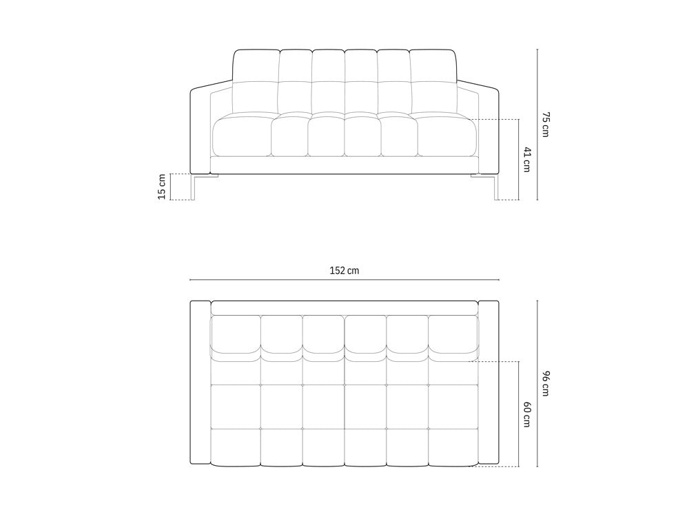 Stoff: Es ist ein synthetischer Stoff, der Samt mit einem zarten Glanz imitiert. Eine ausgezeichnete Wahl für elegante Möbeldesigns. Es hat eine sehr gute Abriebfestigkeit, was das Risiko seines Schadens erheblich verringert (Martindale Test 50000, 320 g/m2). Das Material ist extrem weich und seidig anfühlend.