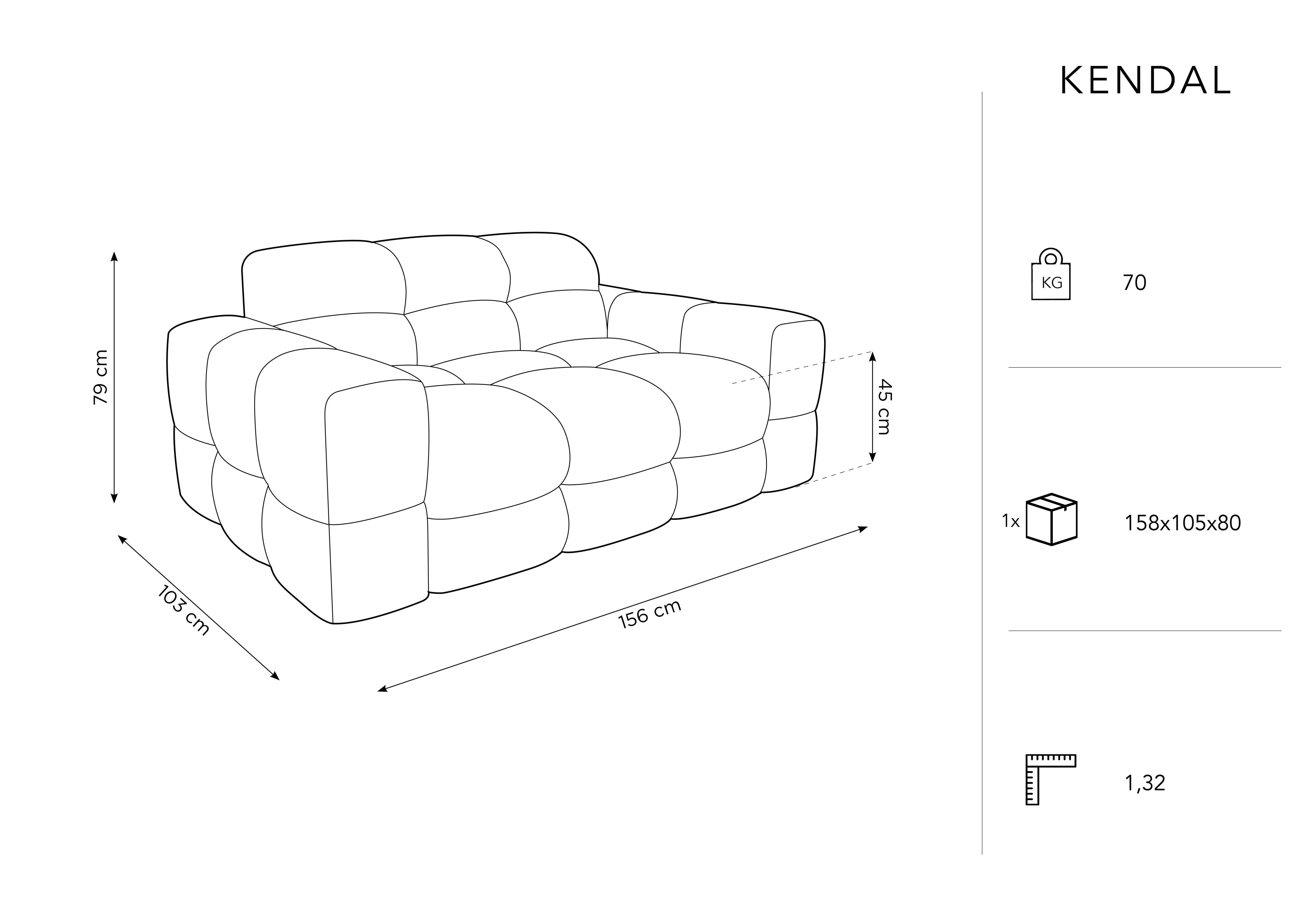 Samtsofa für zwei Kendal beeindruckt mit außergewöhnlichem Nähen und Quilten, was das Innenraum zu einer ungewöhnlichen Eleganz im Stil des modernen Klassiker verleiht. Der Blasensitz in Kombination mit breiten Armlehnen und stilvoller Unterstützung schafft einen bequemen Ort, um sich nach einem harten Tag zu entspannen. Kendal überrascht ein wenig mit der Avant -Gart -Form und erregt Aufmerksamkeit, unabhängig davon, welche Seite wir es betrachten werden.