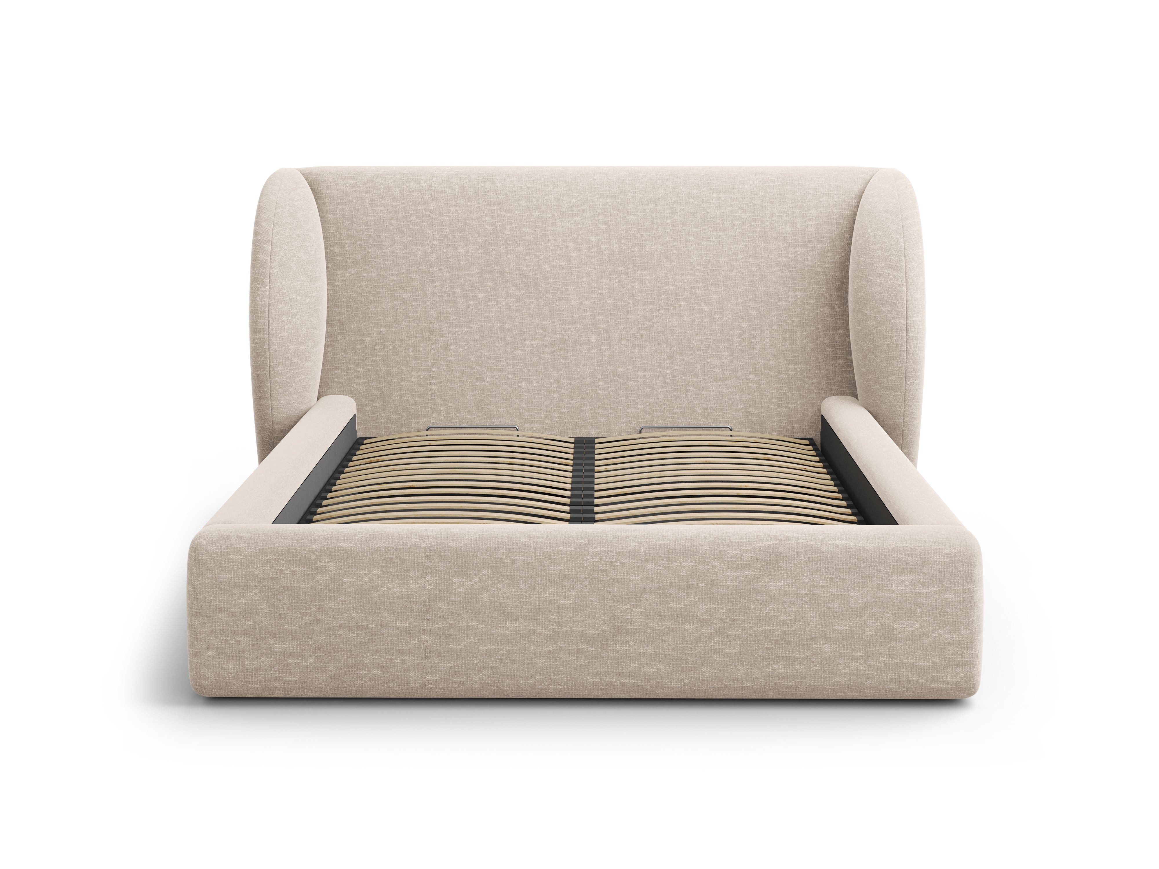 Bett Miley ist nicht nur beeindruckend, sondern auch praktisch – ausgestattet mit einem geräumigen Stauraum für Bettwäsche, der von vorne mit Gasdruckfedern geöffnet wird. Es ist die ideale Wahl für Menschen, die eine Kombination aus Ästhetik, Funktionalität und Komfort im Schlafzimmer schätzen.