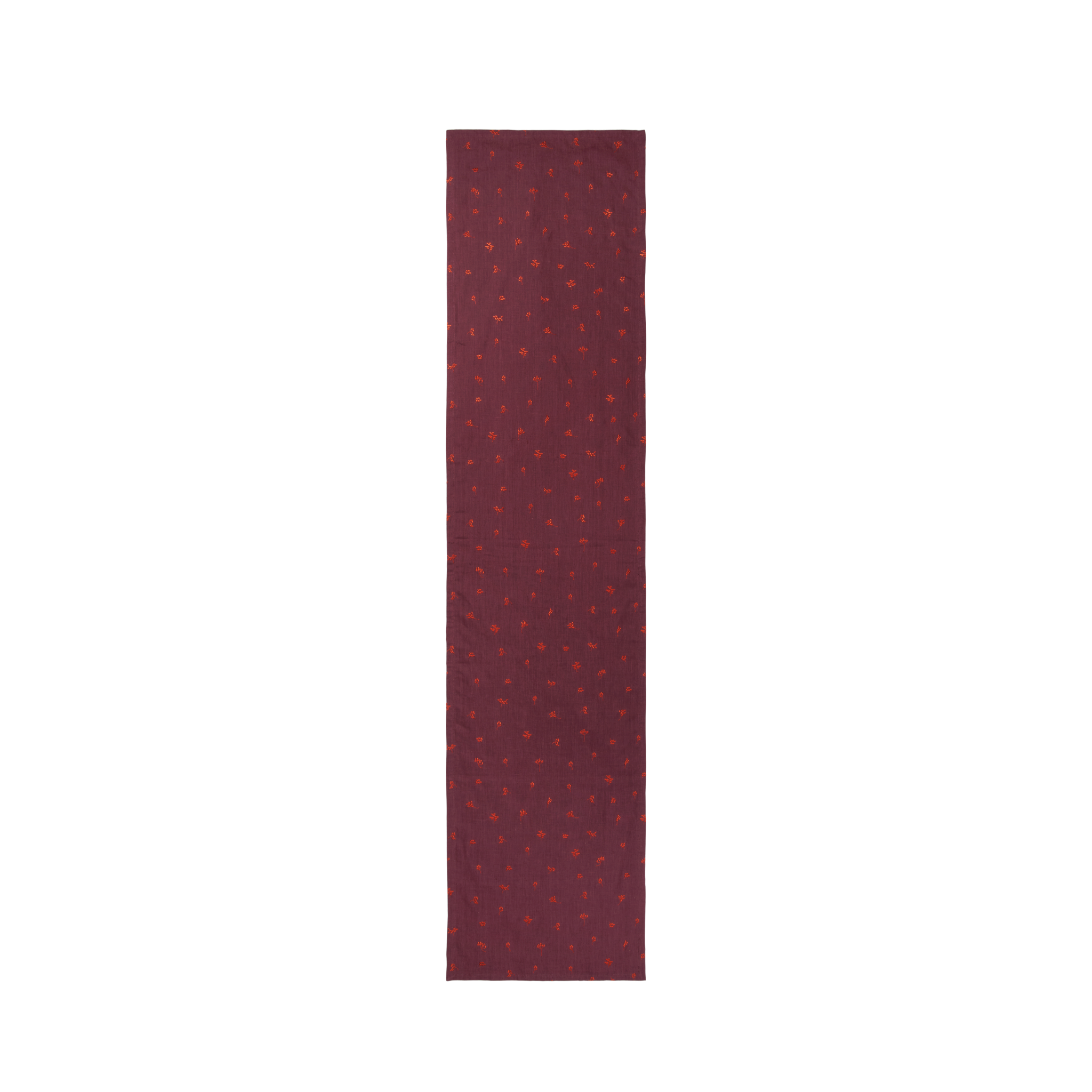 Bieżnik Baies to elegancki dodatek, który wprowadzi do Twojego stołu naturalny urok i świąteczną atmosferę. Wykonany w 100% z lnu, zachwyca swoją miękką strukturą i organicznym wyglądem. Delikatne, ręcznie rysowane gałązki jagód zostały odwzorowane za pomocą precyzyjnego haftu maszynowego, tworząc subtelną i efektowną dekorację. Bordowy odcień tkaniny dodaje wnętrzu głębi i wyrafinowanego charakteru, idealnie komponując się z klasycznymi lub nowoczesnymi aranżacjami stołu.