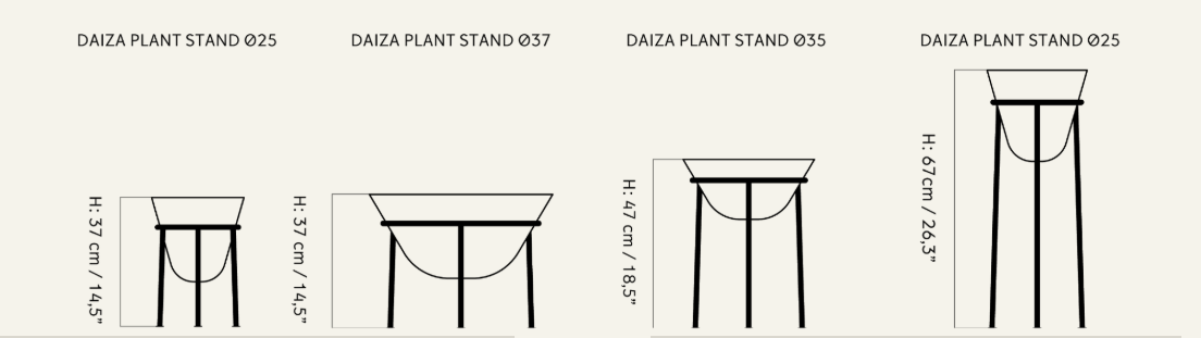 Umieszczona na smukłych, żelaznych nóżkach, donica Daiza zyskuje lekkość i nowoczesny wygląd. Idealna do wnętrz, ale może być również stosowana na zewnątrz przy zachowaniu odpowiednich zaleceń. Dostępna w czterech rozmiarach, pozwala tworzyć ciekawe kompozycje, łącząc różne wysokości i kształty dla efektownego, wielowymiarowego wystroju.