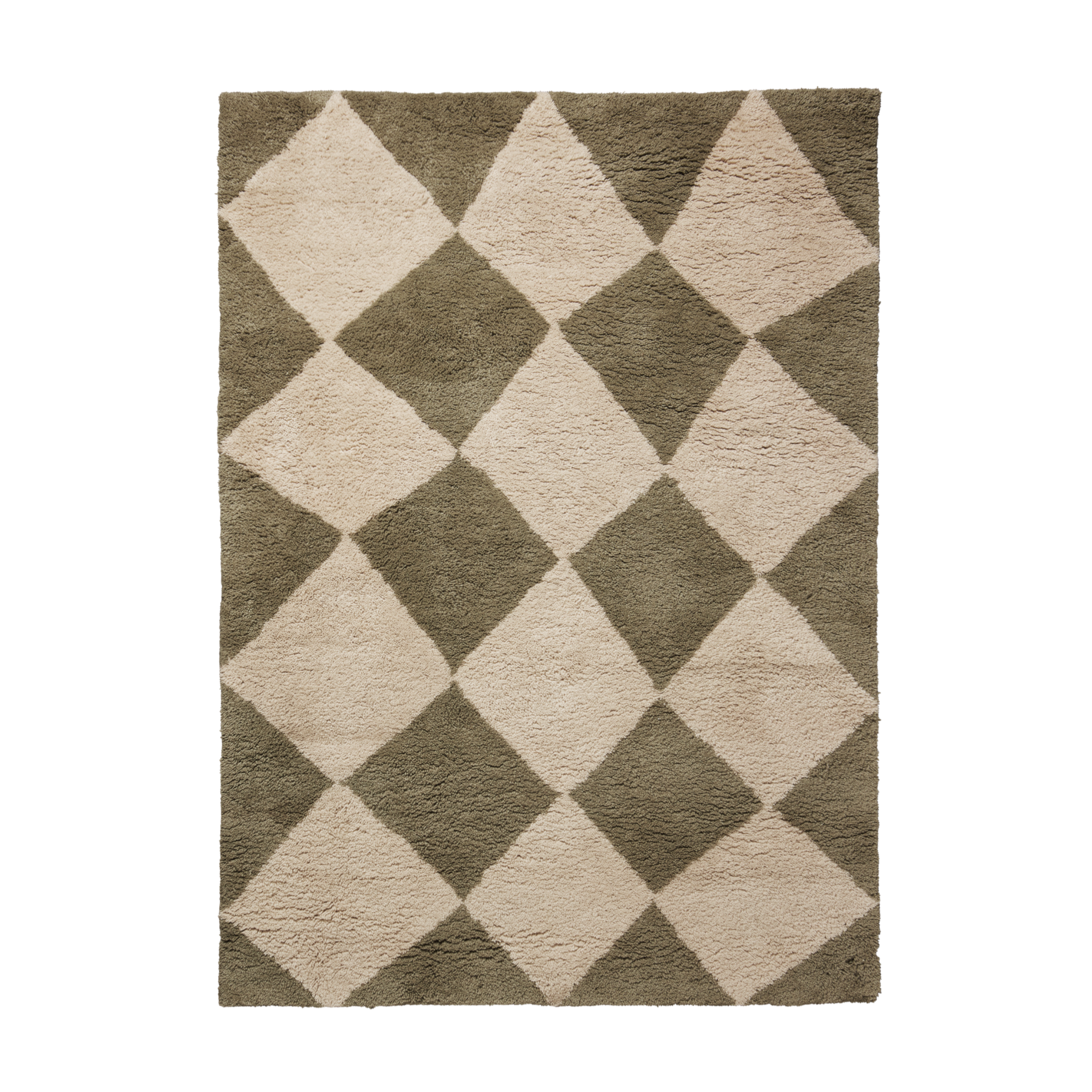 Teppich Tilt bringt mit seinem verschobenen, diamantförmigen Muster und den kontrastierenden Tönen eine dynamische Note in Ihr Zuhause. Hergestellt aus hochwertiger neuseeländischer Wolle, begeistert er mit einem asymmetrischen Layout, das der Einrichtung Rhythmus und Tiefe verleiht. Handgetuftet mit Liebe zum Detail, schafft er eine weiche Oberfläche, die den Raum visuell verankert und ihm Textur sowie subtile Ausdruckskraft verleiht.