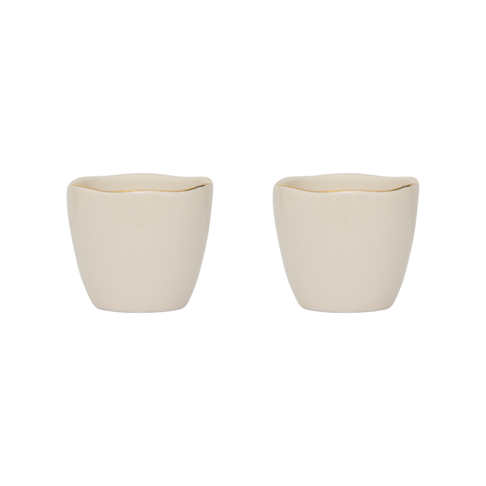 Eierbecher aus der Kollektion Good Morning sind ein elegantes Element des morgendlichen Rituals, das Eleganz mit Funktionalität verbindet. Der handbemalte goldene Rand und die zarte Form machen jede Mahlzeit zu etwas Besonderem. Das Set mit zwei Bechern in einer Geschenkverpackung ist die perfekte Wahl für ein Geschenk oder eine subtile Ergänzung zum täglichen Frühstück.