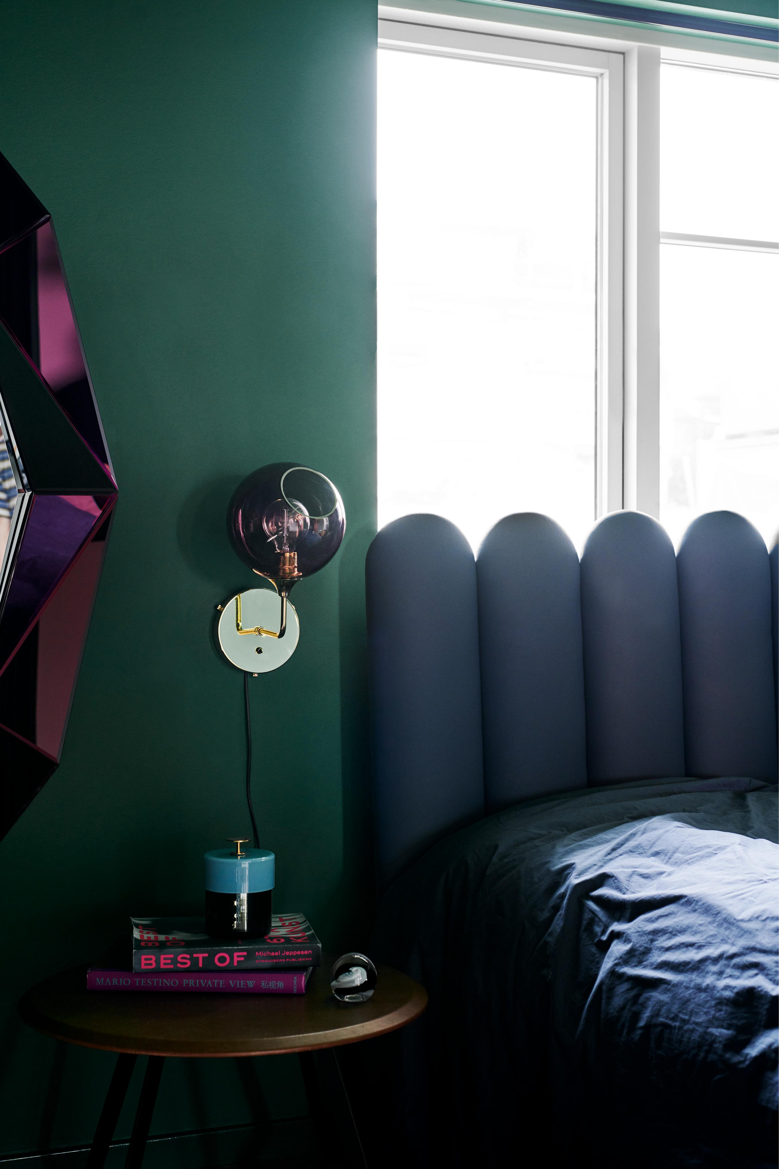 Wandleuchte BALLROOM mit pflaumenfarbenem Glas und goldenem Sockel