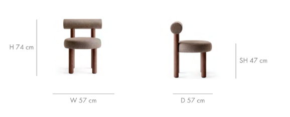 Stuhl Gropius ist in einer breiten Palette von Farben und Stoffen erhältlich, was eine Anpassung an verschiedene Arrangements ermöglicht. Die Möglichkeit, zwischen Holz- oder gepolsterten Beinen zu wählen, die in natürlichen Holznuancen oder in jeder Farbe aus der RAL-Palette lackiert werden können, bietet vollständige Personalisierung.