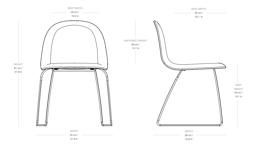 Stuhl GUBI 3D mit weißem Sitz und schwarzem Gestell