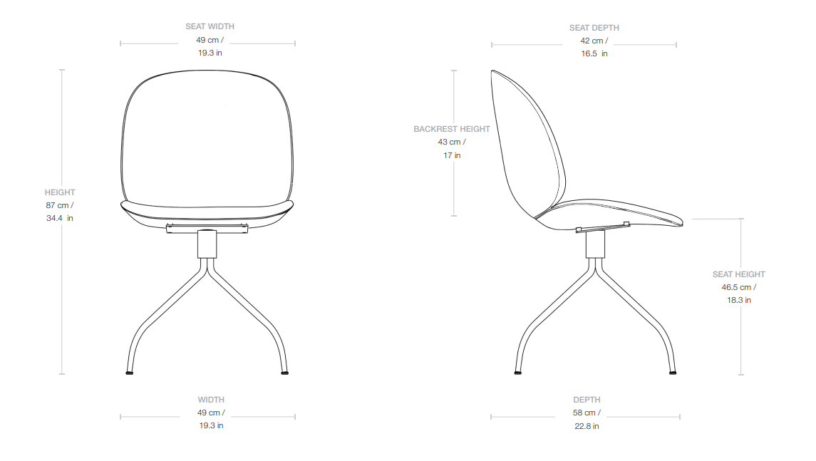 Drehstuhl Beetle auf einem vierarmigen Fuß entspricht ideal den Bedürfnissen eines modernen Arbeitsplatzes zu Hause, im Büro oder in hybriden Räumen. Es ist eine hervorragende Kombination aus Ergonomie, Ästhetik und Langlebigkeit, die mit dem Ziel geschaffen wurde, täglichen Komfort zu bieten.
