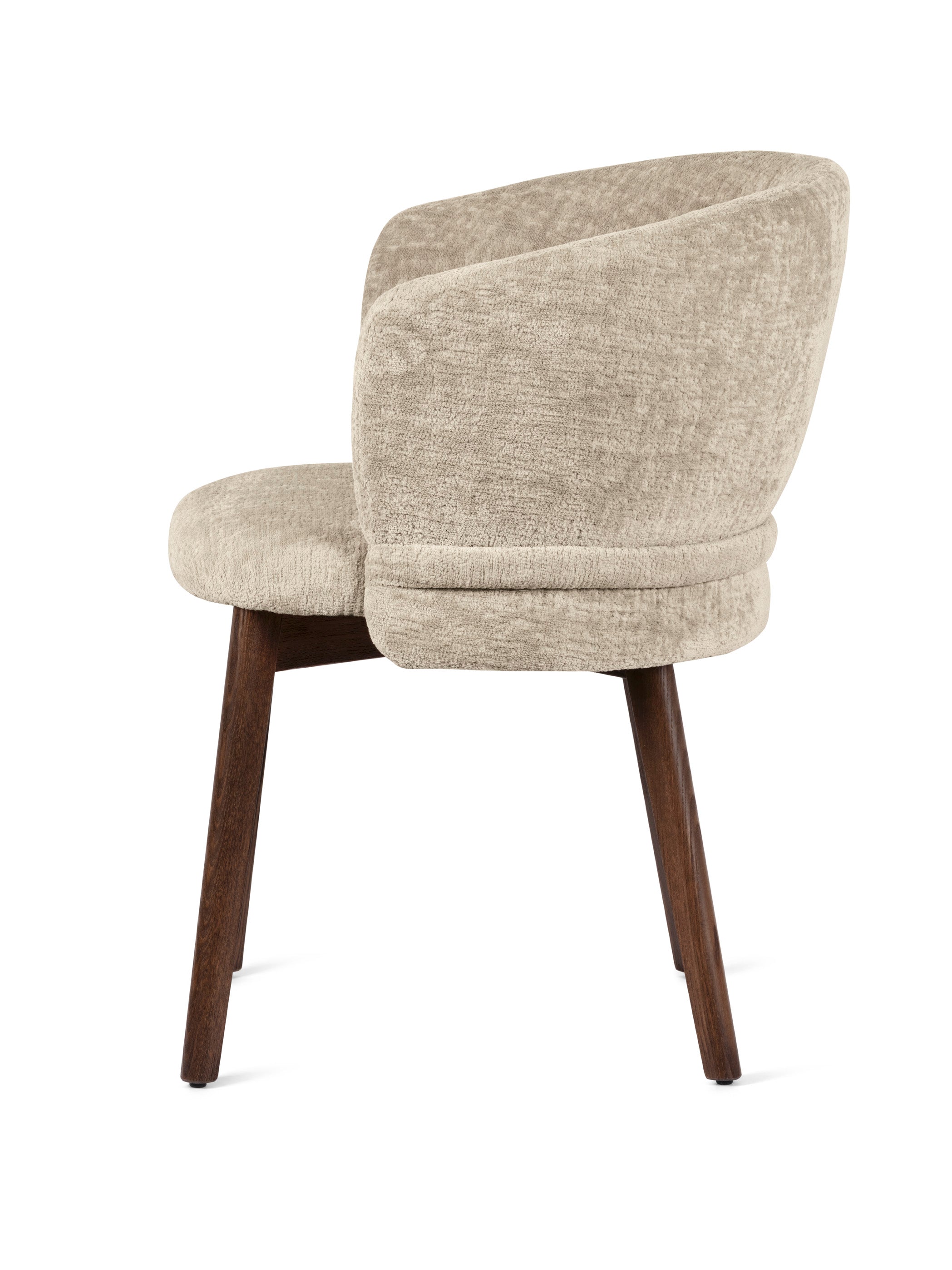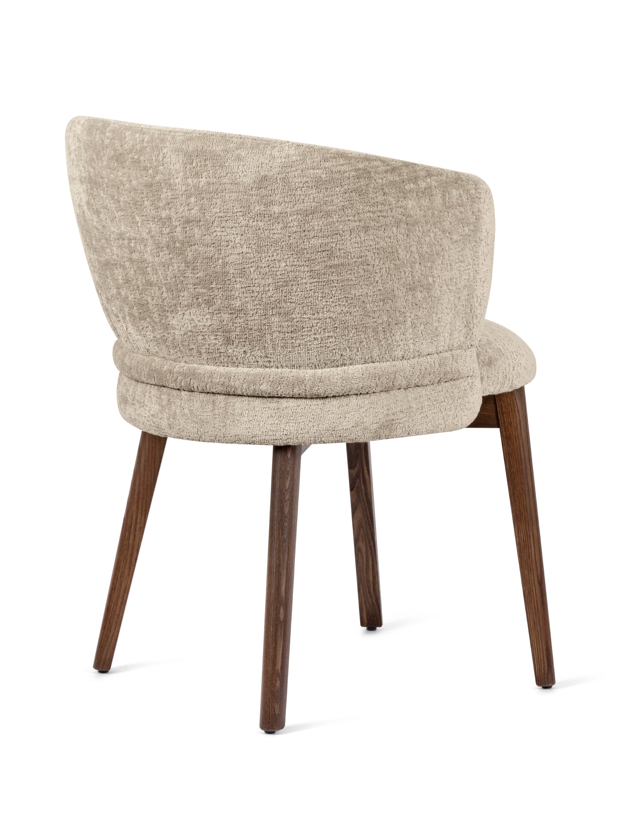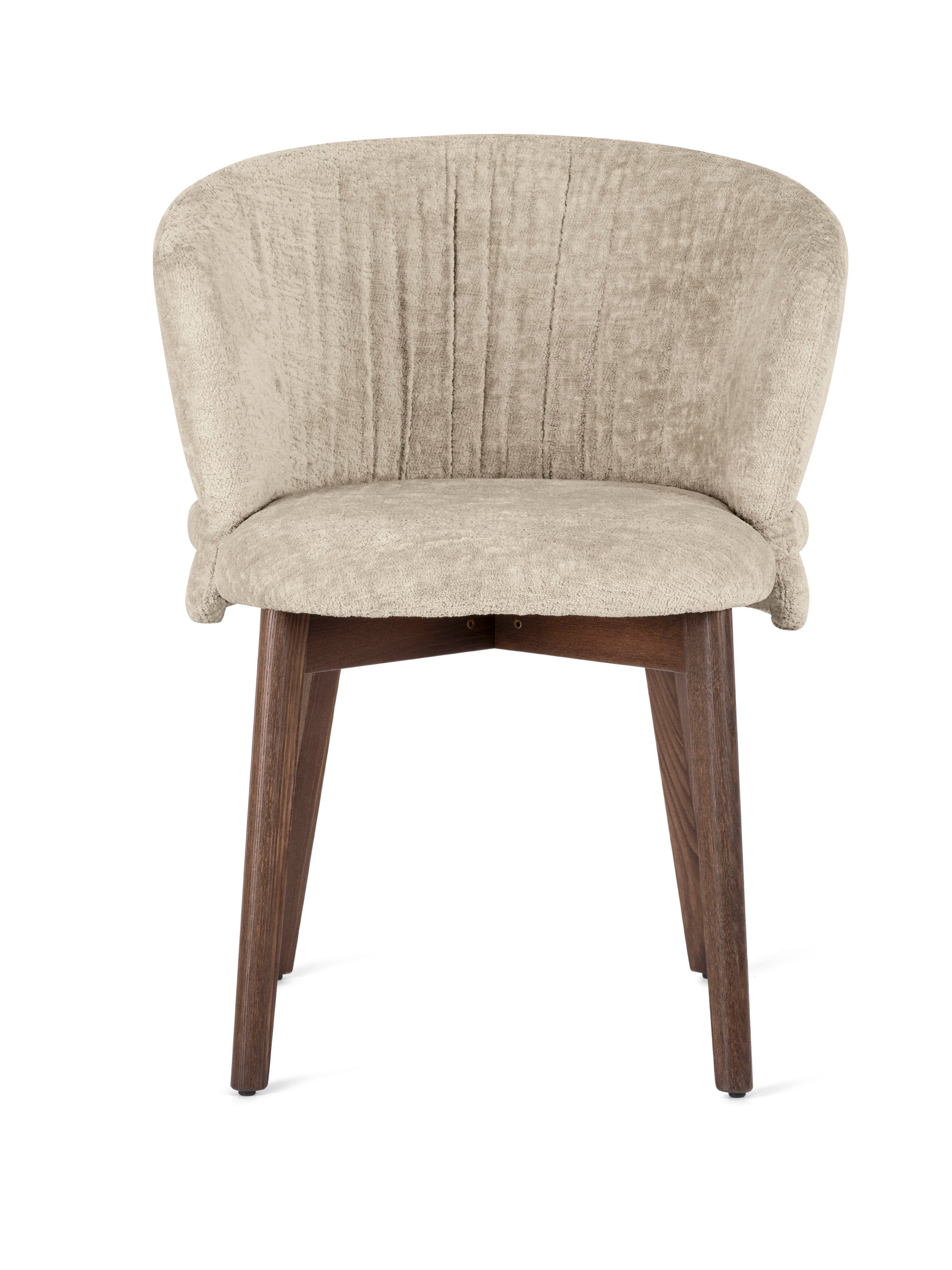Ein charakteristisches Element des Stuhls Vanilla ist der geraffte Bezug sowie das horizontale Detail, das die Rückenlehne wie ein Gürtel umschließt und die raffinierte Ästhetik des Möbels unterstreicht. Sowohl die Version mit Holzbeinen als auch die mit Metallbeinen betont seine subtile Eleganz und macht den Stuhl zu einer stilvollen Wahl für das Esszimmer, das Wohnzimmer oder repräsentative Räume.