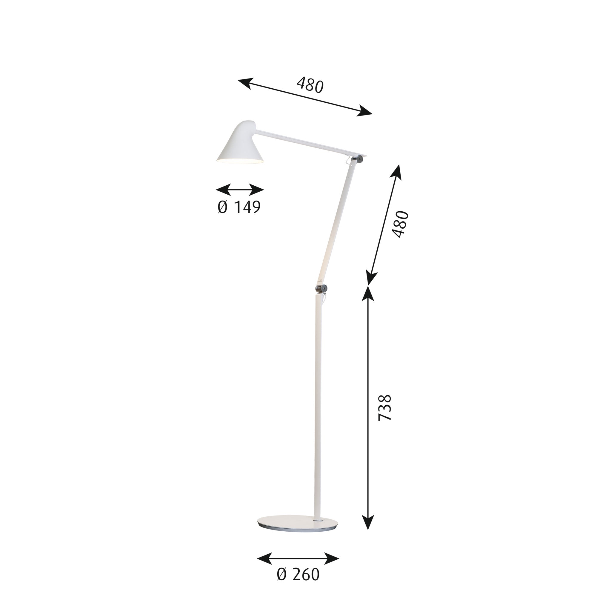 Stehlampe NJP ist eine moderne Interpretation der klassischen Winkel-Lampe, entworfen von Oki Sato – dem Gründer des Studios nendo. Ihre minimalistische Form und hervorragende Funktionalität machen sie zur idealen Wahl für die Bedürfnisse zeitgenössischer Innenräume. Verstellbare Arme und der Kopf bieten volle Freiheit bei der Lichtausrichtung, was diese Lampe zu einer perfekten Wahl für die Beleuchtung beim Lesen neben einem Sessel oder Sofa macht. Dank des durchdachten Designs wurde die Lichtquelle hoch platziert, um Blendung zu vermeiden und eine komfortable, diffuse Beleuchtung zu gewährleisten. Ein subtiler Detail in Form eines schornsteinartigen Kopfes ermöglicht es dem Licht, sanft den oberen Teil des Arms zu beleuchten und gleichzeitig effektiv Wärme abzuleiten.
