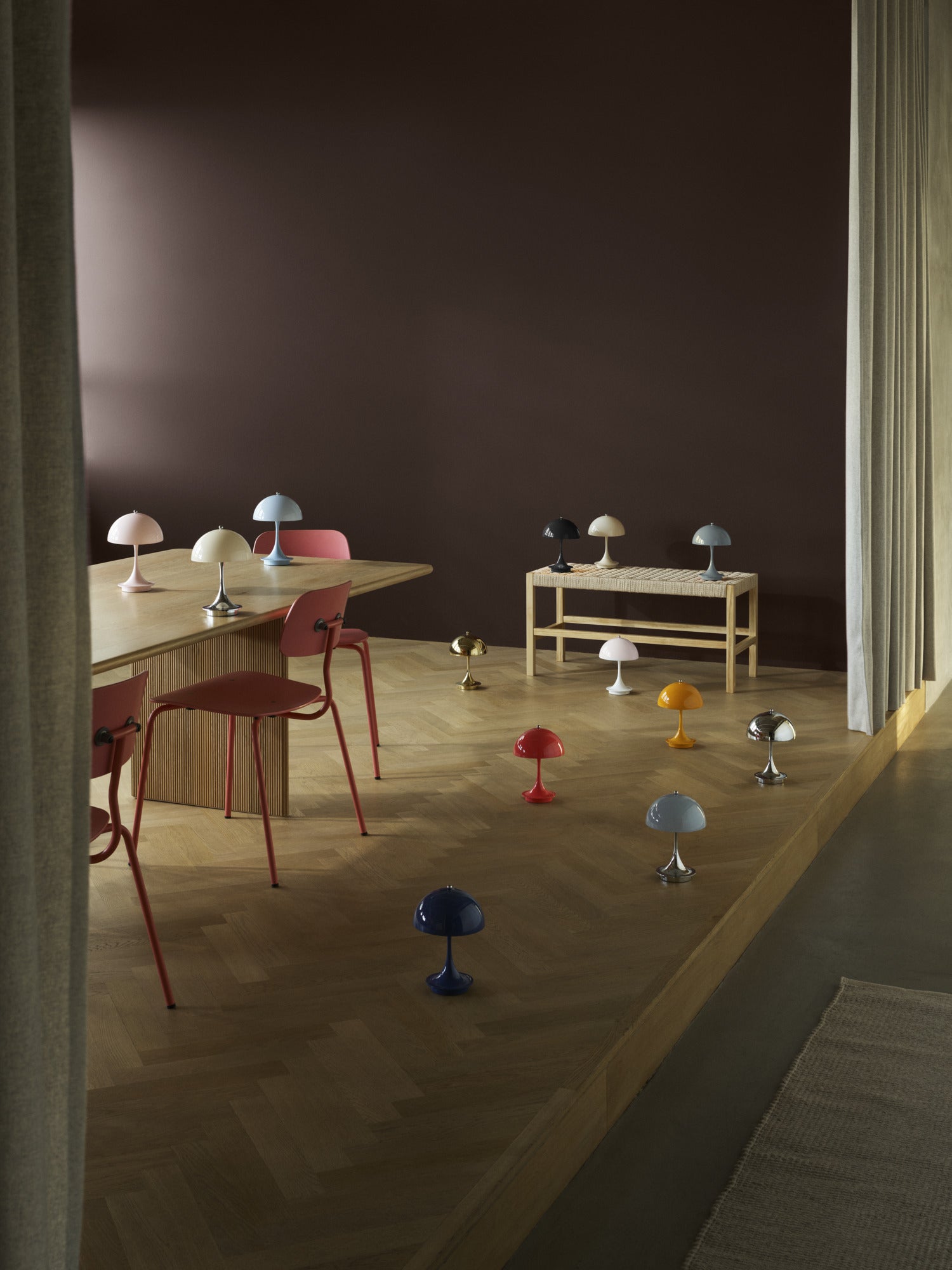 Lampa przenośna Panthella 160 to ikona designu w kompaktowej formie, zaprojektowana przez Vernera Pantona w 1971 roku. Ten kultowy model, stworzony we współpracy z Louis Poulsen, łączy w sobie elegancję, funkcjonalność i wyjątkową estetykę. Lampa przenośna Panthella 160 emituje miękkie, rozproszone światło, które tworzy przyjemny nastrój w każdym wnętrzu – od salonu po taras czy ogród. Dzięki wbudowanemu akumulatorowi można ją łatwo przenosić, a dotykowy włącznik i funkcja stopniowego ściemniania pozwalają dostosować natężenie światła do potrzeb użytkownika.
