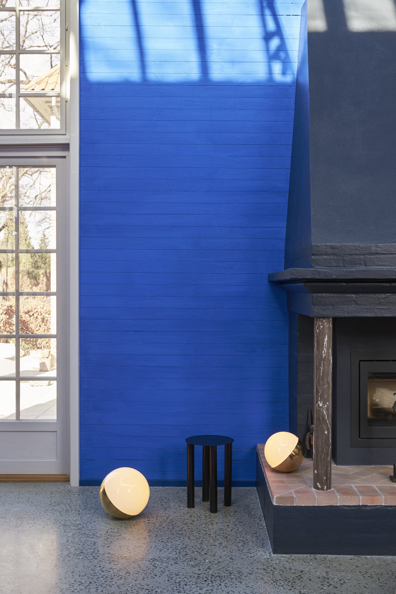 Das dreischichtige, geblasene opale Glas streut das Licht gleichmäßig und sanft und schafft eine angenehme Atmosphäre ohne Blendung. Die Lampe VL Studio ist in drei Größen erhältlich – von der kompakten Version, die ideal für einen Tisch ist, bis hin zu einem größeren Modell, das auf dem Boden platziert werden kann. Es sind zwei Oberflächen erhältlich: poliertes Messing, das mit der Zeit natürlich patiniert, und modernes mattes Schwarz, das den minimalistischen Charakter des Designs unterstreicht.