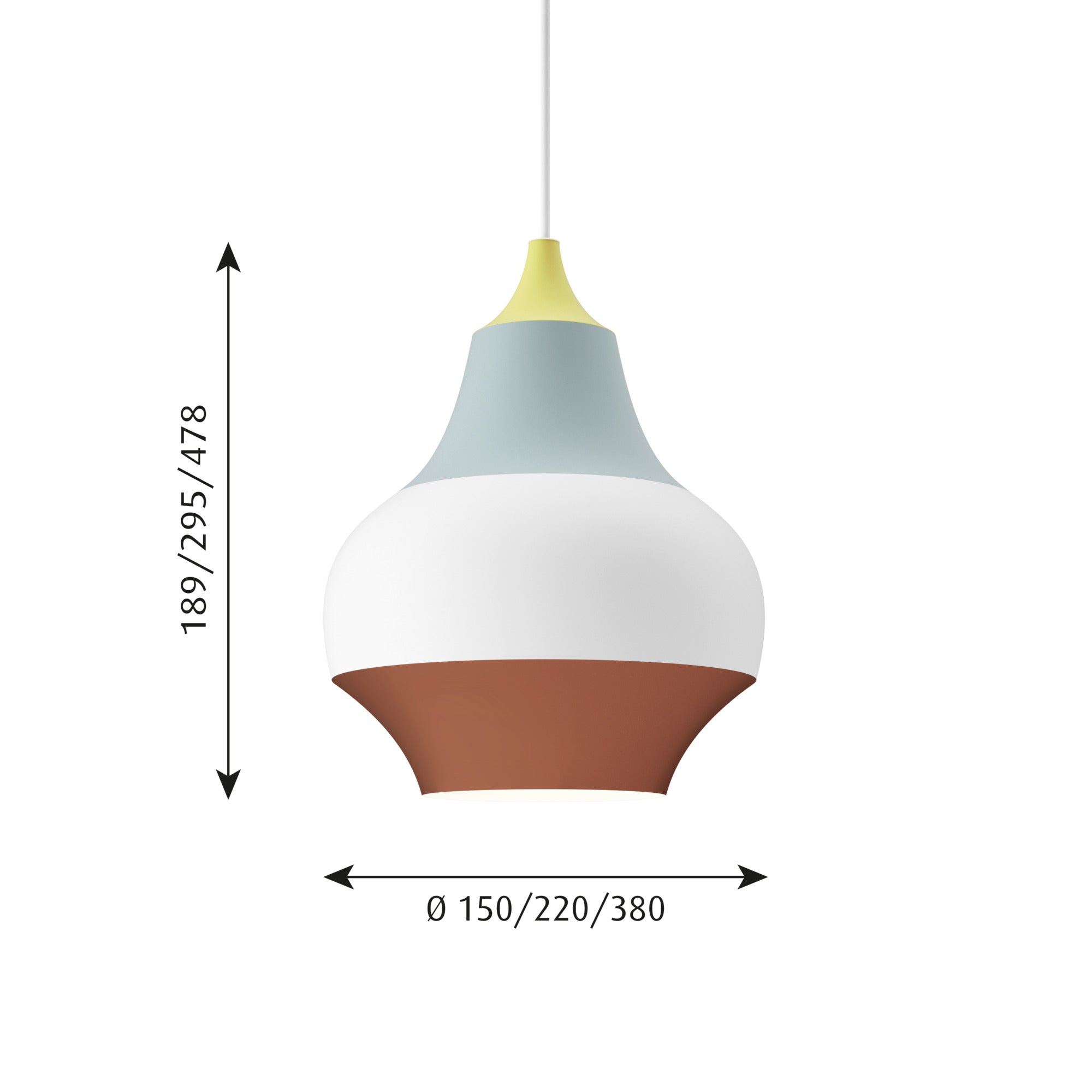 Dank des weißen, lackierten Innenlebens des Schirms sorgt die Pendelleuchte Cirque für weiches, angenehmes Licht ohne Blendung, perfekt für das Esszimmer, die Küche oder das Wohnzimmer. Erhältlich in drei Größen, passt sie ideal in jeden Raum – sowohl als einzelner Akzent als auch in Kombination mit mehreren Lampen, die eine dynamische Lichtkomposition schaffen. Cirque ist die Quintessenz moderner Form, Farbe und Licht in einem.