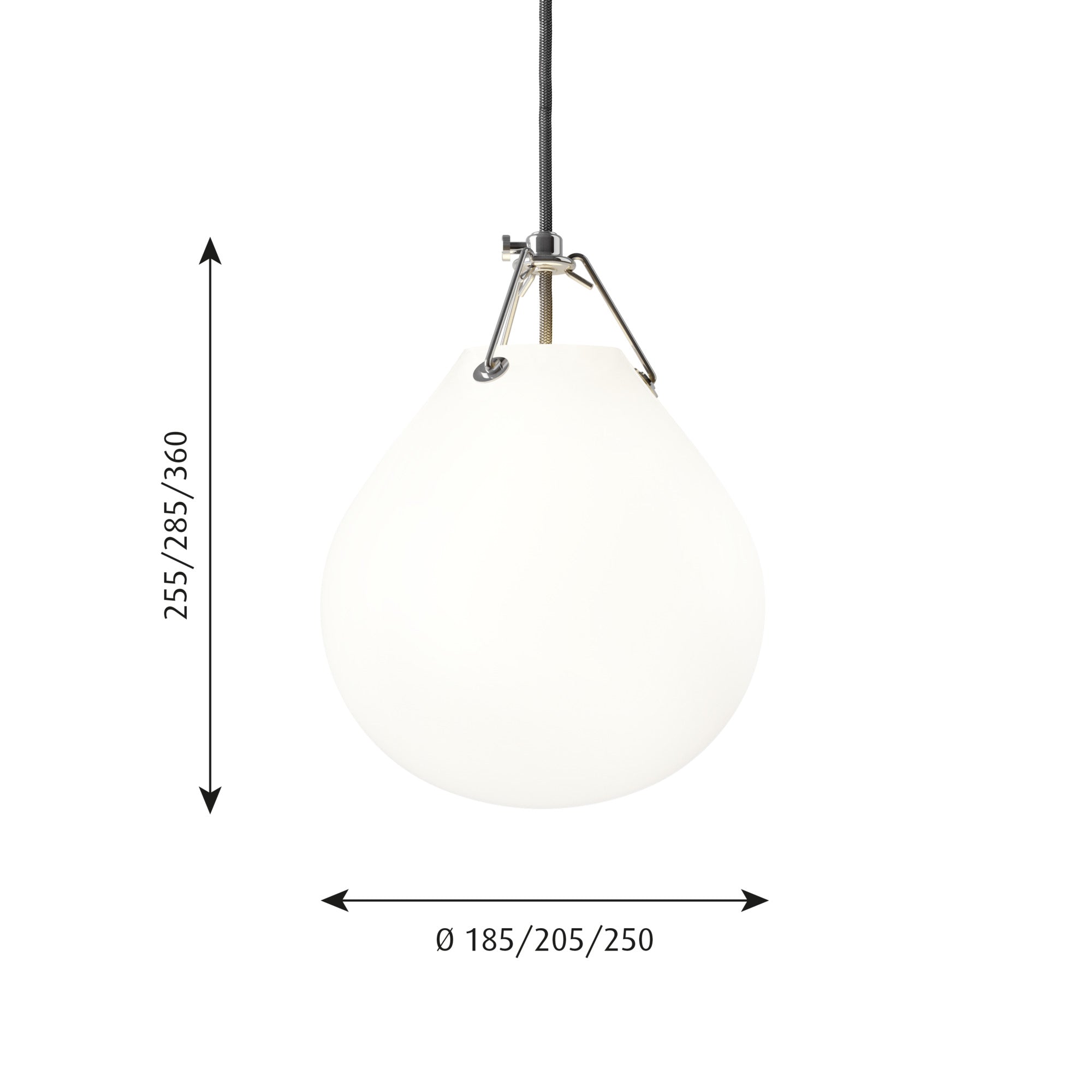 Subtile Pendelleuchte Moser ist ein Werk der schwedischen Keramikkünstlerin Anu Moser, das im Jahr 2002 geschaffen wurde. Ihre Form ist inspiriert von dem Prozess der Glasherstellung – dem Moment, in dem geschmolzenes Glas beim Blasen zu einer Form wird. Dadurch begeistert die designorientierte Pendelleuchte mit ihrer organischen, tropfenförmigen Silhouette, die Weichheit und Harmonie in den Raum bringt. Jeder Schirm ist aus mattem, mundgeblasenem Opalglas gefertigt, was dafür sorgt, dass das Licht angenehm diffus und vollkommen blendfrei ist.