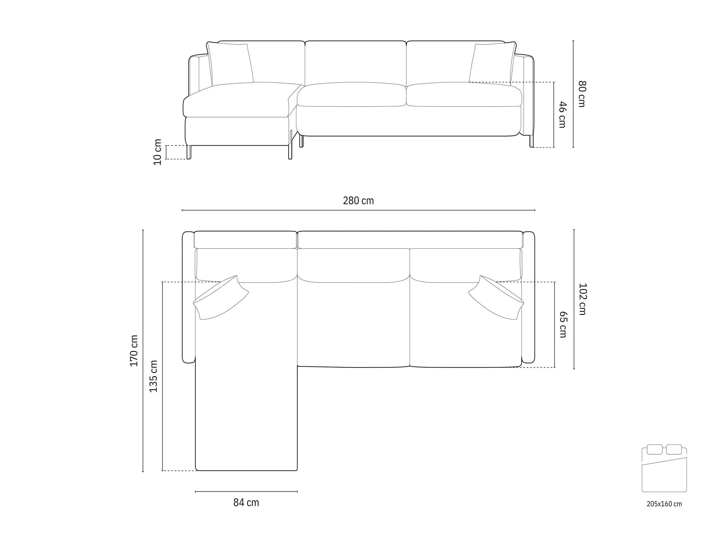 Linke Ecksofa mit Bettfunktion und Schachtel, "Gloria", 5 Sitze, Blau, 280x170x80 In Europa gemacht
