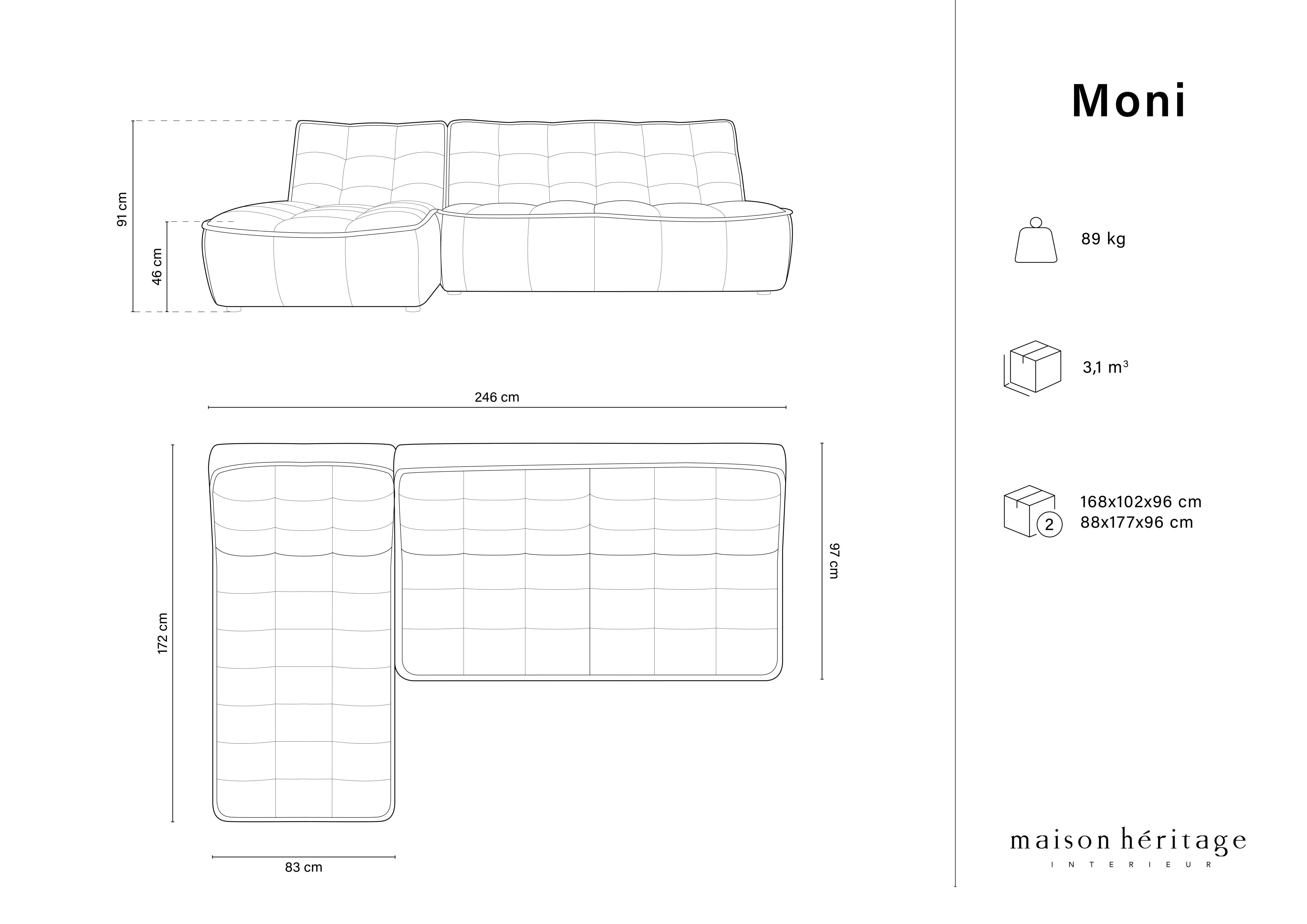 Narożnik skórzany lewostronny MONI czarny Maison Heritage    Eye on Design