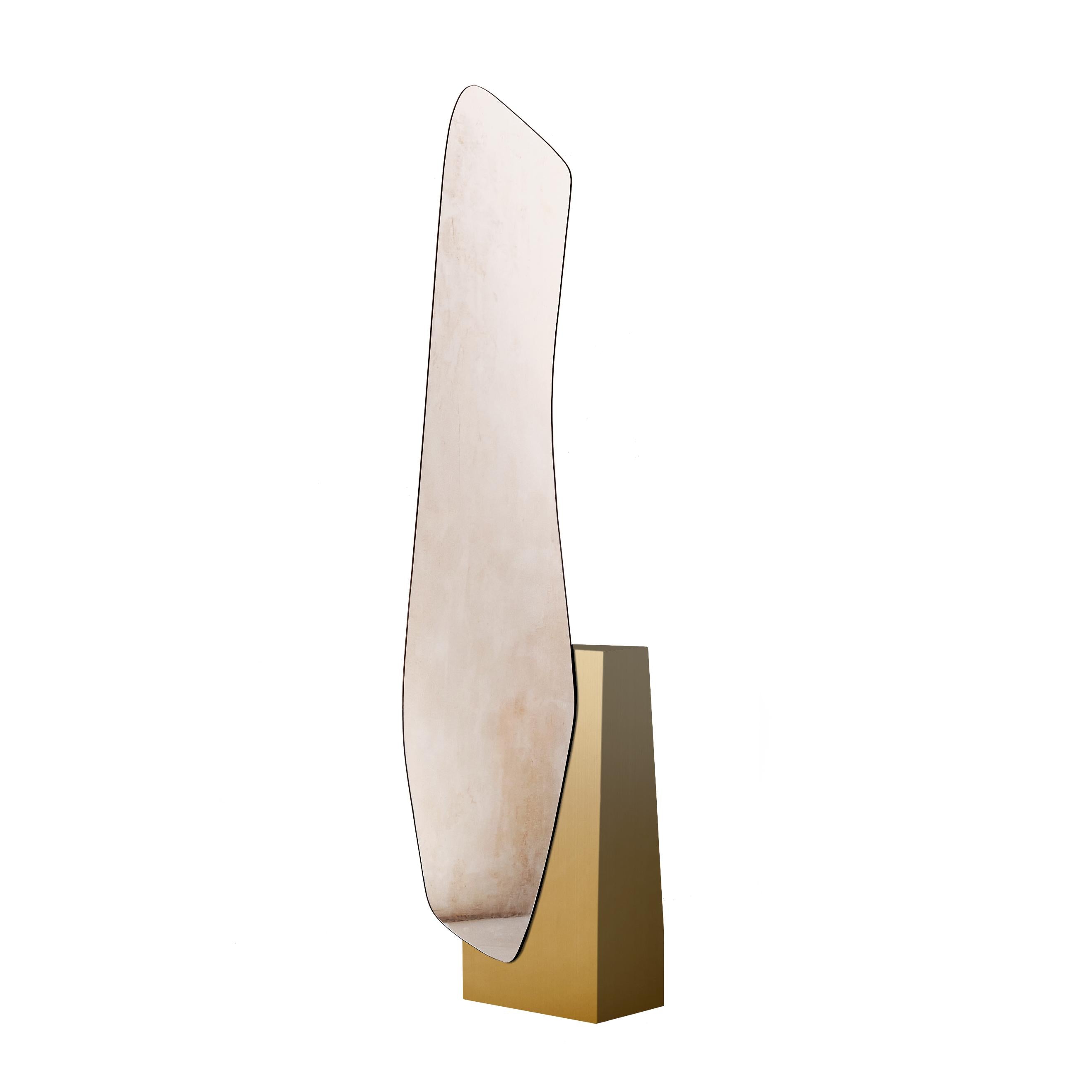 Boden Spiegel Lake 5 ist ein Element aus einer von der Natur inspirierten Kollektion, entworfen von den französischen Designern Maryna Dague und Nathan Baraness. Die Kollektion Lakes bezieht ihren Namen von den Uferlinien der Seen und ihren geschwungenen Formen, die im Design der Spiegel festgehalten wurden. Die Designer betonen den Kontrast zwischen den fließenden Formen des Glases und den klaren Linien der Stützen, die aus Materialien wie Holz, Messing, Kupfer, Marmor und anderen außergewöhnlichen Rohstoffen gefertigt sind.