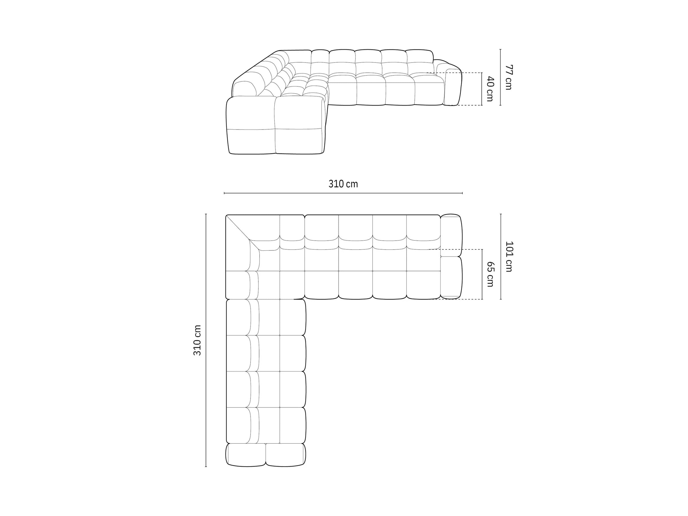 Narożnik aksamitny prawostronny 5-osobowy JODIE jasnoszary Micadoni    Eye on Design