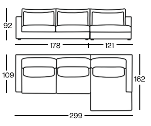 Szerokość siedziska: 263 cm