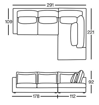 Modularer 4-Sitzer-Ecksofa rechts NUVIA gepolstert