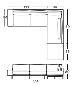 Ecksofa für 5 Personen linksseitig BRIXTON gepolstert mit schwarzem Gestell