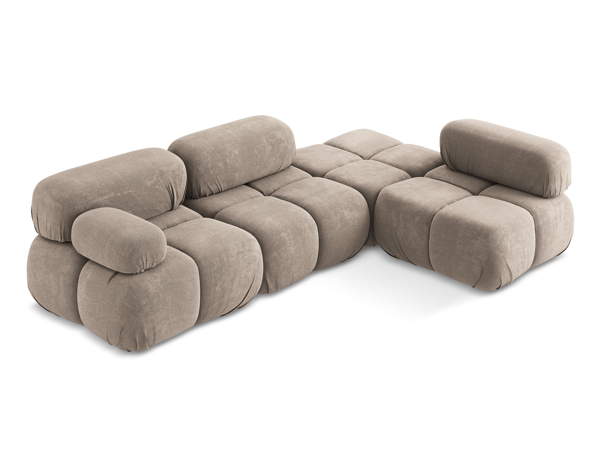 Ecksofa Lokua zeichnet sich durch seine einzigartige, zeitgenössische Form und stilvolle, gepolsterte Bezug aus, die dem Raum Charakter und Eleganz verleiht. Die modulare Konstruktion ermöglicht die Schaffung individueller Arrangements, die an den Raum angepasst sind – von weitläufigen Anordnungen bis hin zu kompakteren Konfigurationen. Lokua ist ein Möbelstück, das Eleganz mit Praktikabilität verbindet, ideal für moderne Innenräume und bietet höchsten Komfort und Stil.