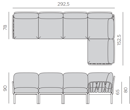 Die Konstruktion des Ecksofas Komodo 5 basiert auf einem langlebigen Gestell aus regeneriertem Polypropylen, das mit Glasfaser verstärkt und mit UV-Zusätzen angereichert ist, was Wetterbeständigkeit und Langlebigkeit gewährleistet. Die Verwendung von recycelten Materialien macht dieses Ecksofa zu einer umweltfreundlichen Wahl. Die bequemen Kissen aus Sunbrella®-Stoff, die dank Reißverschlüssen leicht abnehmbar und waschbar sind, erhöhen den Nutzungskomfort. Das Ecksofa Komodo 5 ist die perfekte Wahl für diejenigen, die sowohl Funktionalität als auch Ästhetik in Außenbereichen schätzen.
