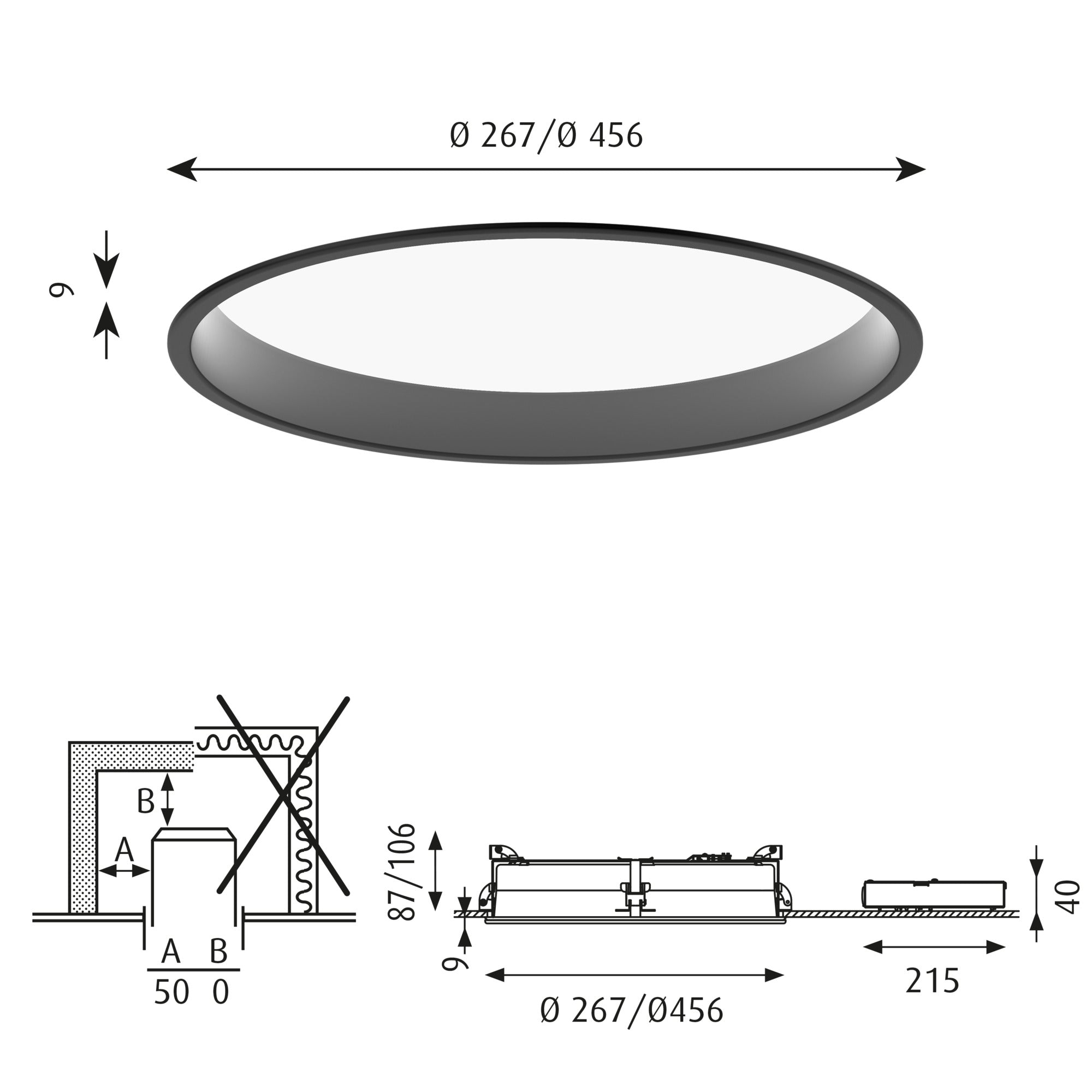 Plafon podtynkowy LP CIRCLE RECESSED czarny