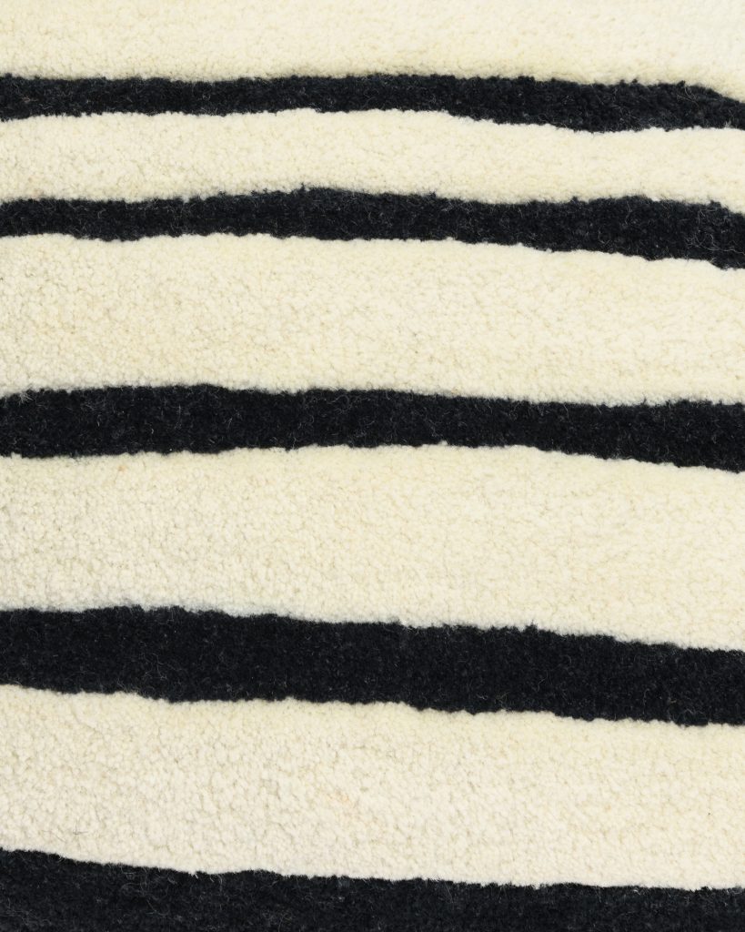 Jedes Kissen wird handgefertigt aus hochwertigen Materialien, was es zu einem kleinen Kunstwerk macht. Die Vorderseite besteht zu 100% aus Wolle, die Rückseite zu 100% aus Baumwolle, und die Füllung besteht aus Schaumgranulat, einem Nebenprodukt der Möbelproduktion — das ist nicht nur eine langlebige und bequeme Lösung, sondern auch umweltfreundlich. Die ausgefeilten Details und die spürbare Struktur verleihen ihm einen einzigartigen, luxuriösen Charakter.