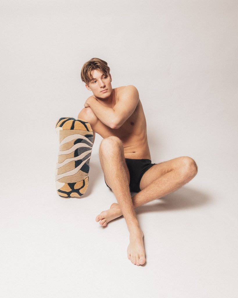 Kissen Coral ist ein ausdrucksstarker dekorativer Akzent, dessen Form von Unterwasserlandschaften inspiriert ist — organische Linien erinnern an Meeresströmungen und die Struktur von Korallen. Die Farbpalette umfasst warme Beigetöne und Cremetöne, kombiniert mit tiefem Marineblau und einem lebhaften Akzent in Orange, was einen dynamischen und eleganten Kontrast schafft.