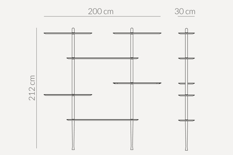 Dank der modularen Bauweise ermöglicht das Regal eine funktionale Anordnung der Regalböden und eine beeindruckende Präsentation von Büchern und Dekorationen. Es ist ein designorientiertes Regal, das die Architektur des Innenraums betont und ein zeitloses Element der Gestaltung im modernen oder klassischen Stil darstellt.