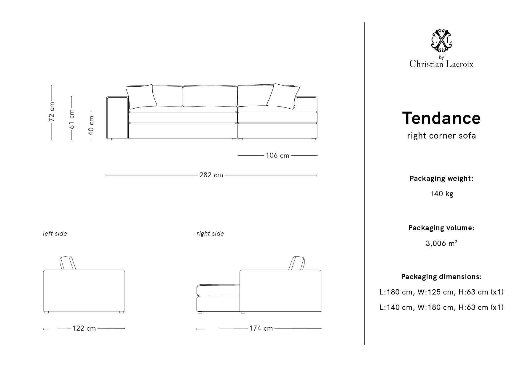 Samtecke Tendance, unterschrieben von Französisches Modehaus Christian Lacroix, Dies ist eine schöne Kombination aus zeitloser Eleganz mit modernem Design. Die geometrischen und subtilen Formen dieser Ecke bringen ein wenig Gemütlichkeit in Ihr Innenraum. Sein kubisches Design verleiht dem Ganzen einen einzigartigen Charakter.