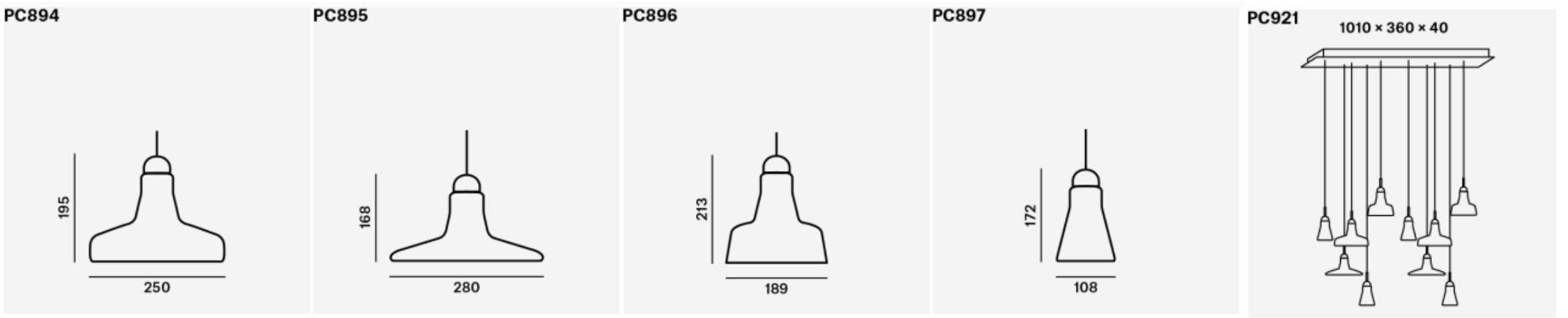 Schattenhöhe: 16,8 / 17.2 / 19.5 / 21,3 cm