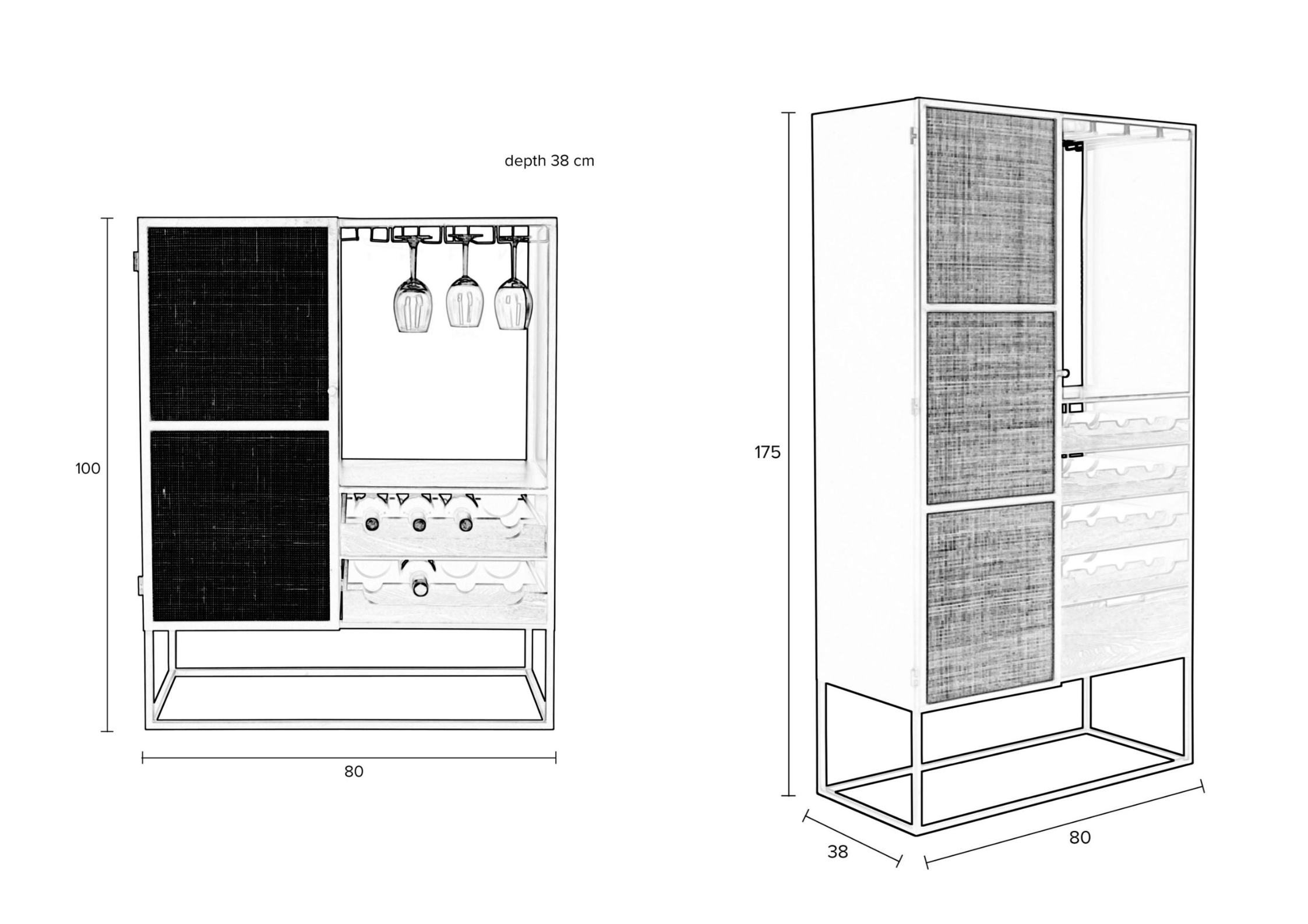 Stilvoller Weinschrank Guji ist ein elegantes Möbelstück mit japanischen Details, perfekt für die Küche oder das Wohnzimmer. Inspiriert vom Japandi -Trend kombiniert es japanisches und skandinavisches Design und schafft eine einzigartige Atmosphäre in Ihrem Innenraum. Kabinett Es ist mit einer Rattan -Tür mit einem magnetischen Riegel, zwei Regalen, vier Weinschubladen und einer zusätzlichen Schublade darunter ausgestattet. Es hat auch einen Weinglasstand. Guji ist Teil der Serie, die unterschiedliche Größen und Varianten anbietet und konsistente Arrangements im gesamten Haus ermöglicht. Weinschrank Guji ist eine echte Attraktion, die jedem Innenraum Stil und Funktionalität verleiht.
