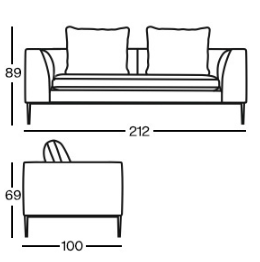 Die schlanken, metallischen Beine verleihen dem Sofa eine subtile Erhöhung und schaffen einen Effekt von Leichtigkeit und Eleganz, der im Kontrast zur Solidität der Konstruktion steht. Die sanft abgerundeten Armlehnen fügen sich harmonisch in die geräumige Sitzfläche ein und bieten einen bequemen Platz zum Entspannen. Die dezente Farbpalette und die große Auswahl an Stoffen ermöglichen eine einfache Anpassung des Sofas Nash an den individuellen Einrichtungsstil und machen es zu einem funktionalen und ästhetischen Element moderner Räume.