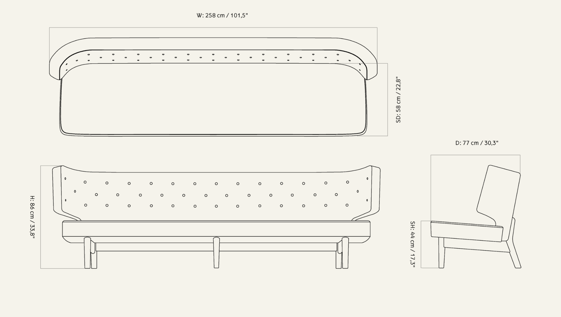 Sofa 3-osobowa RADIOHUS beżowy z orzechową podstawą
