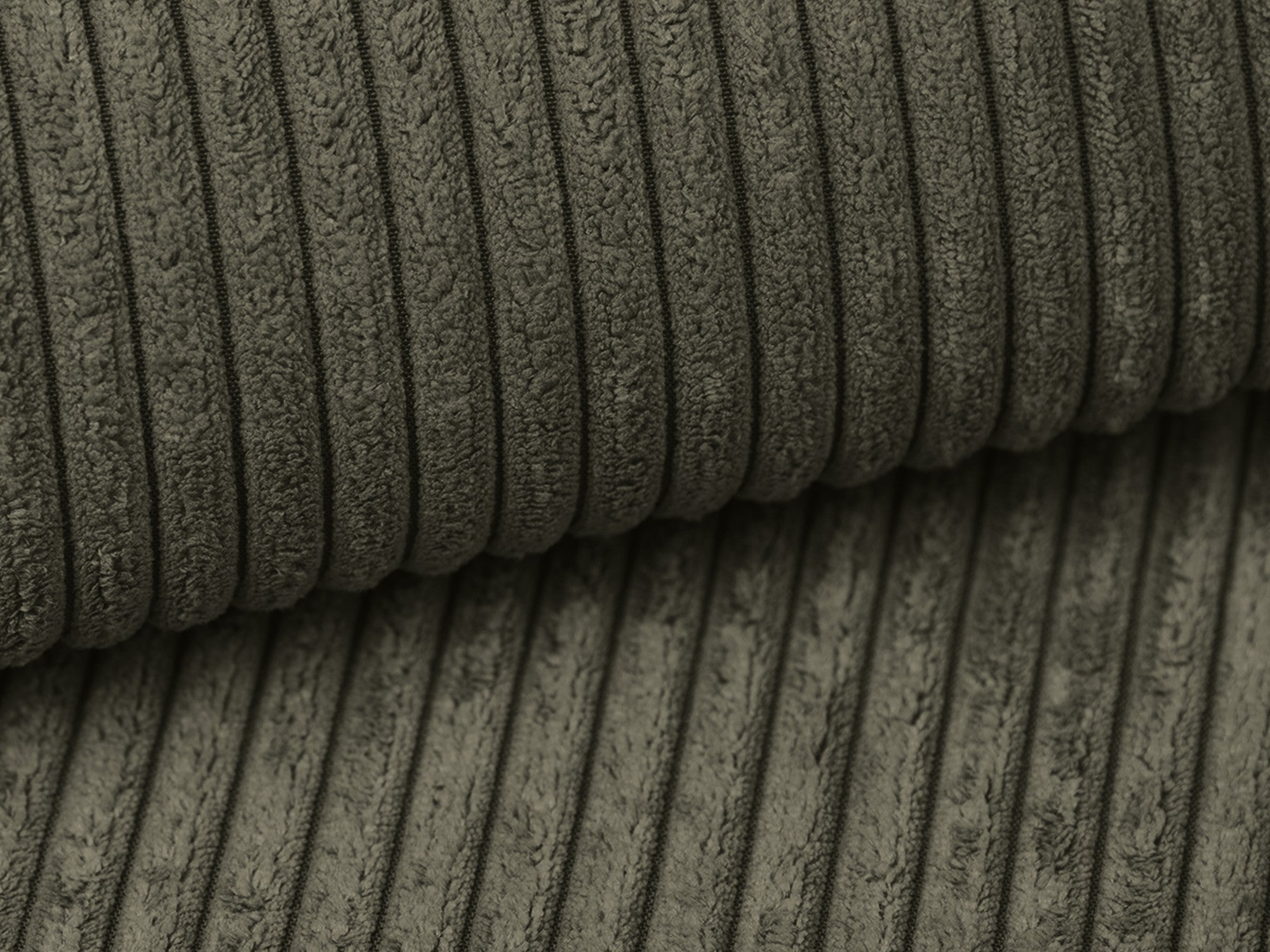 Tkanina sztruksowa zastosowana w sofie Kalena wyróżnia się wyrazistą, trójwymiarową strukturą o grubych żebrach, które nadają meblowi przytulny i nowoczesny charakter. Dzięki dłuższemu włosiu materiał jest wyjątkowo miękki i przyjemny w dotyku, a zarazem odporny na ścieranie, co potwierdza wynik 35 000 cykli w teście Martindale’a. Tkanina ta doskonale sprawdza się również w domach, w których mieszkają zwierzęta, ponieważ jej struktura i skład są przystosowane do codziennego kontaktu z pupilami. Sztruks nie tylko podnosi komfort użytkowania mebla, ale również sprawia, że sofa prezentuje się ciepło i stylowo.