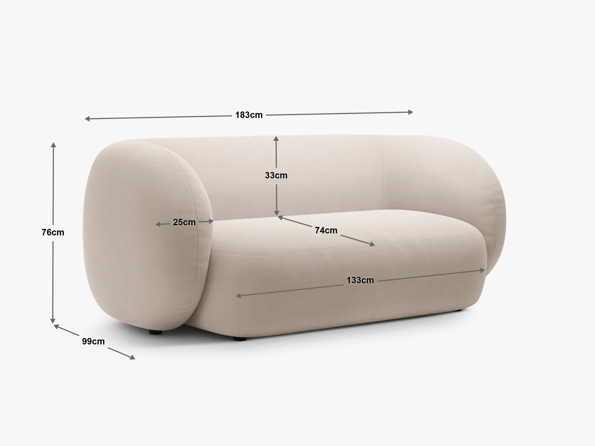 Zweisitzer Sofa Kate ist ein kompaktes Möbelstück, das weiche, runde Formen und Eleganz inspiriert vom Mid-Century-Stil in Ihr Zuhause bringt. Dank seiner Proportionen eignet es sich hervorragend für kleinere Räume oder gemütliche Ecken, und die elastische Sitzfläche, gefüllt mit mittelweichem Schaumstoff, sorgt für den Komfort des täglichen Gebrauchs.