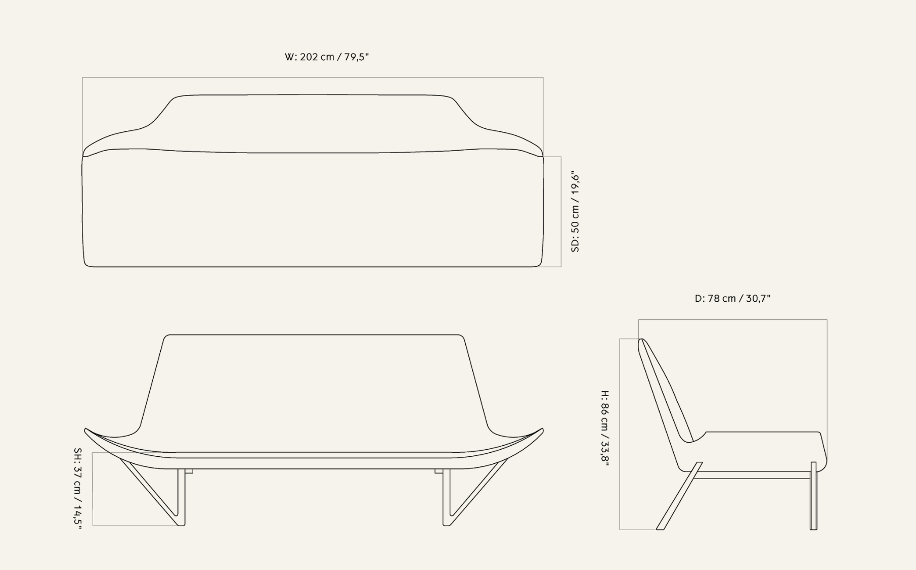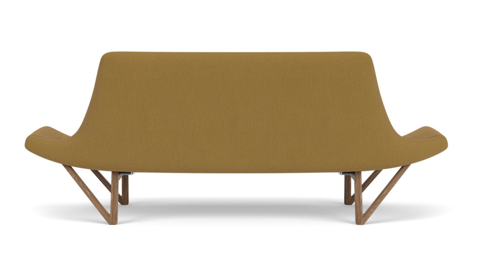 Sofa PAGODE musztardowy z orzechową podstawą
