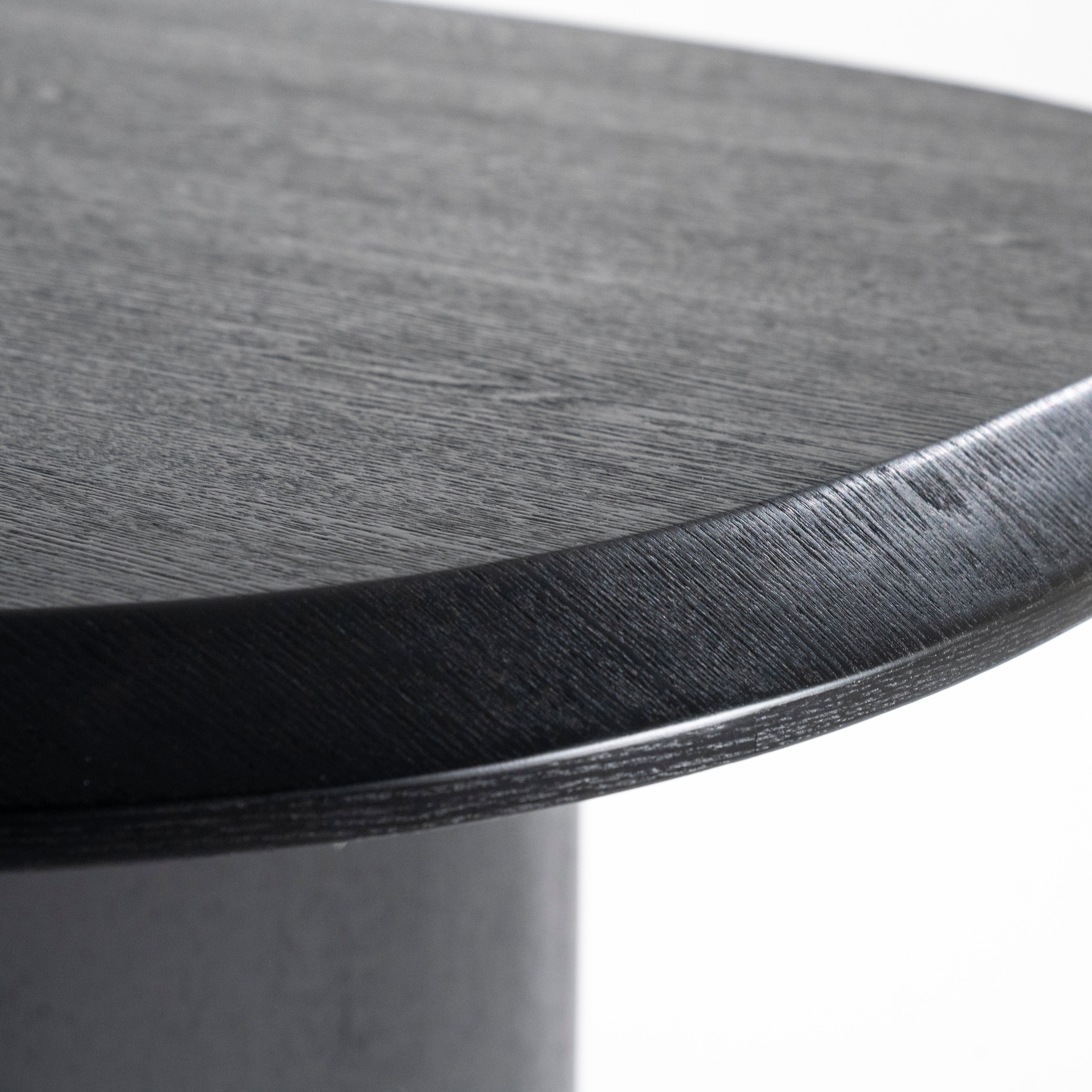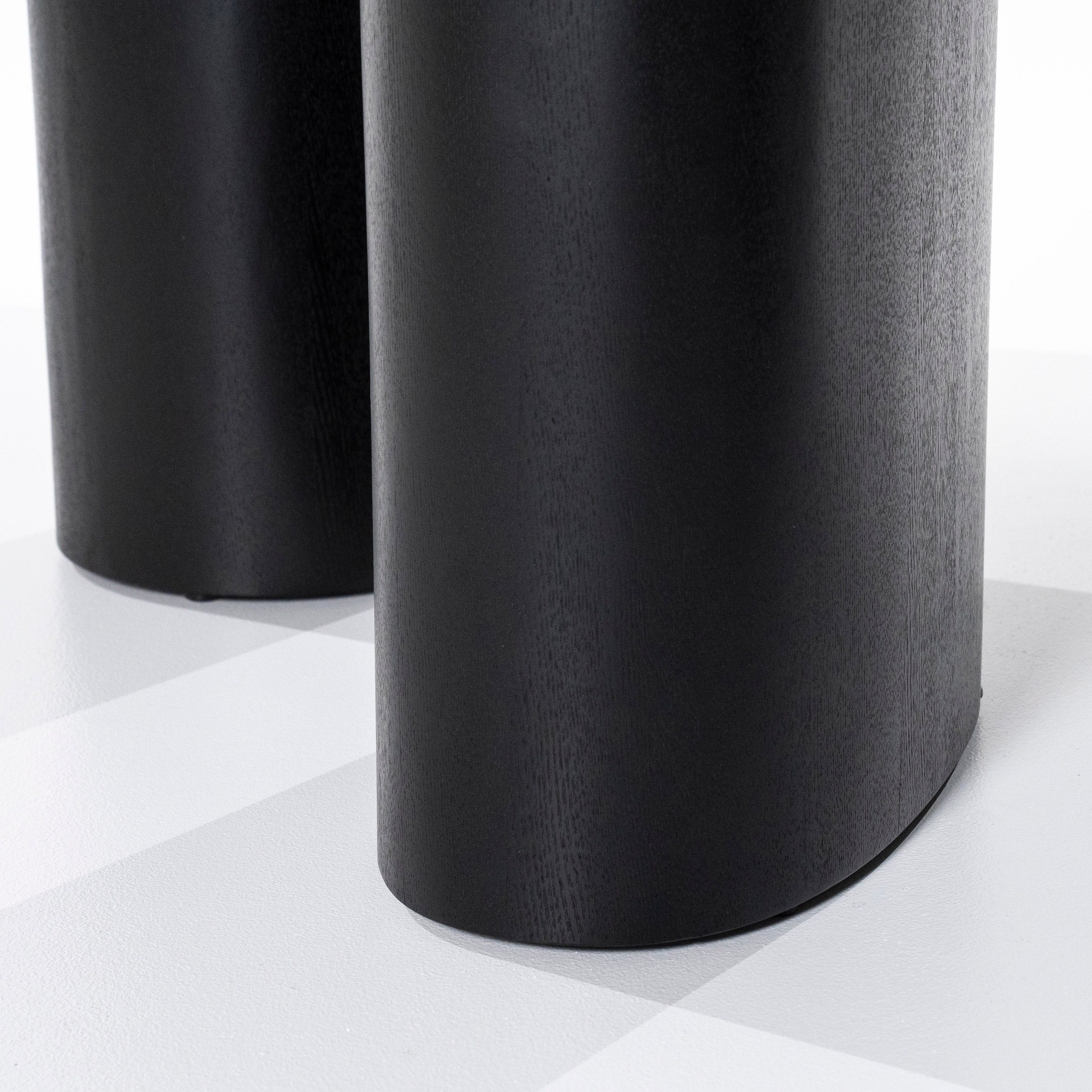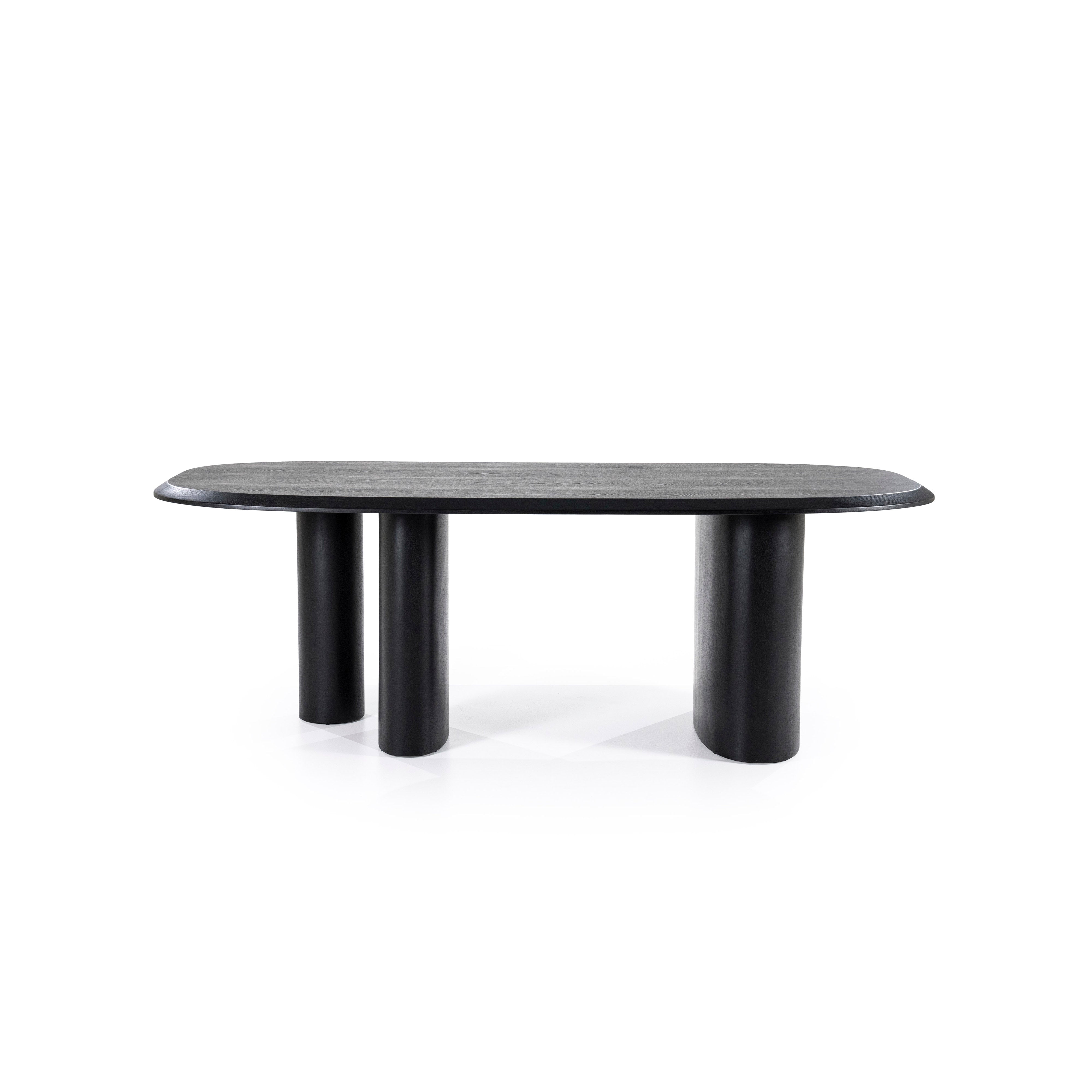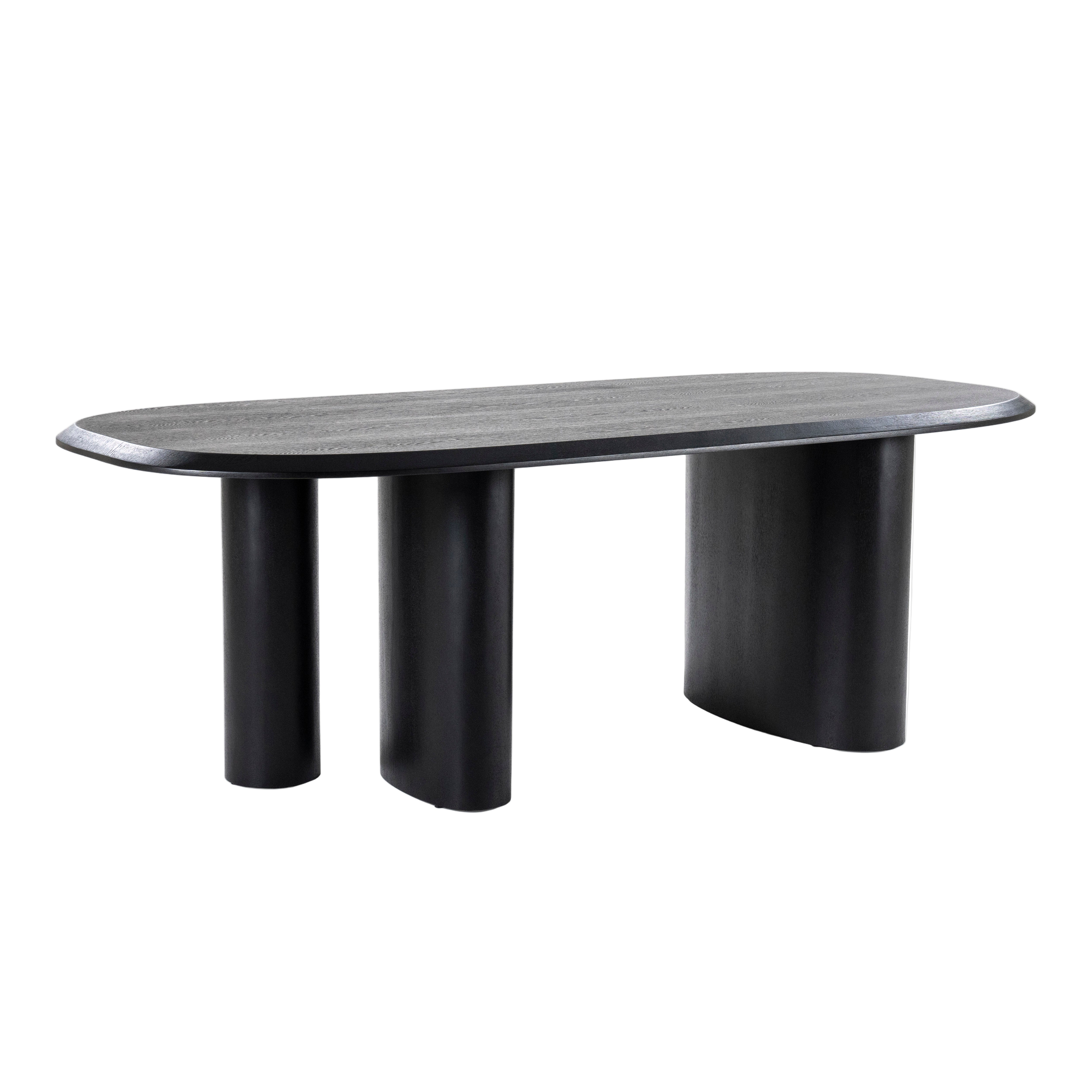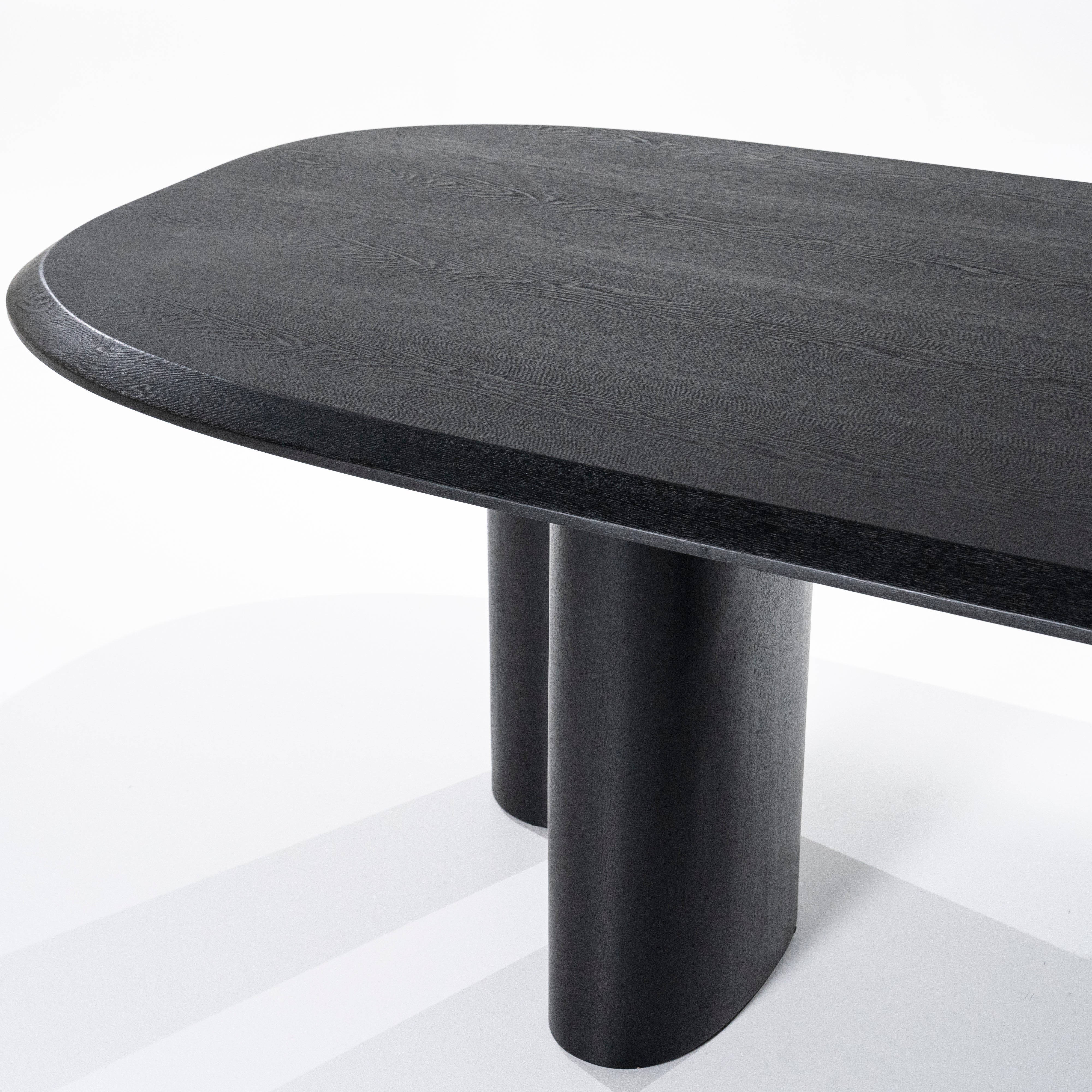 Der Tisch Walter ist ein luxuriöses und modernes Element für das Esszimmer, das die Eleganz von Eichenfurnier mit einem markanten, schwarzen Finish verbindet. Die ovale Tischplatte verleiht dem Raum Leichtigkeit, während das außergewöhnliche Gestell mit drei unterschiedlichen Beinen eine beeindruckende, skulpturale Form schafft. Dieser Holztisch begeistert nicht nur durch sein Aussehen, sondern auch durch seine Langlebigkeit und die Qualität der Verarbeitung, wodurch er sich sowohl für den täglichen Gebrauch als auch für Zusammenkünfte in größerer Runde hervorragend eignet.