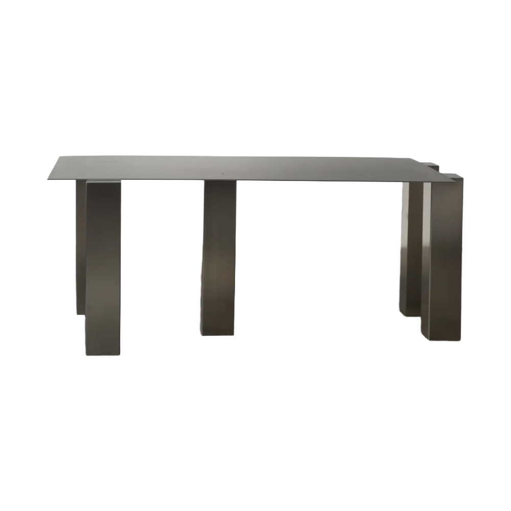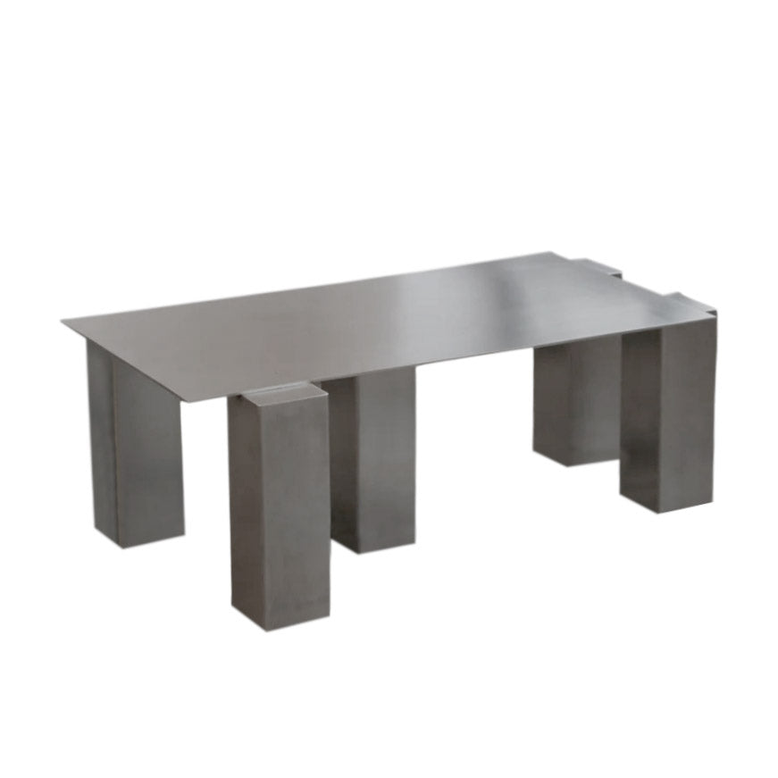 Der Stahlkaffee-Tisch Atrium vereint minimalistische Form und rohe Eleganz in einem. Seine geometrische Gestalt zieht die Blicke auf sich und wird zu einem starken Akzent in jeder Einrichtung – sowohl in industriellen Lofts als auch in modernen, reduzierten Räumen. Dies ist die ideale Lösung für Menschen, die designorientierte Kaffeetische mit markantem Charakter schätzen.