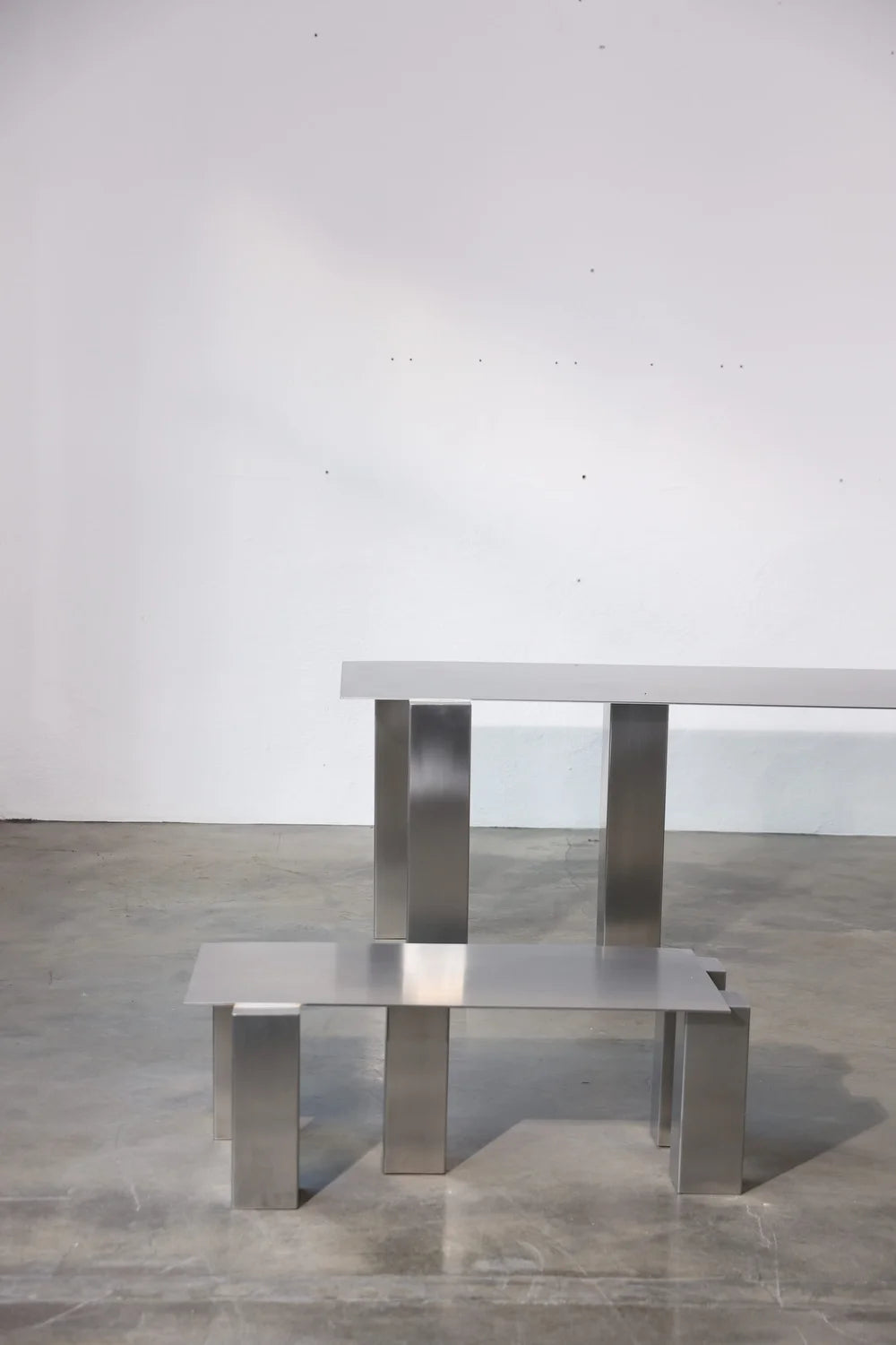 Der Tisch für das Wohnzimmer ist in zwei Ausführungen erhältlich: die Basic-Version, pulverbeschichtet in einer Farbe aus der Palette, und die Flagship-Version, die vollständig aus rostfreiem Stahl gefertigt ist. So können Sie ihn perfekt an Ihre eigene Ästhetik und den Stil Ihres Interieurs anpassen. Die solide Konstruktion und die zeitlose Form machen den rechteckigen Tisch Atrium zu einem Möbelstück, das die Zeit überdauern wird.