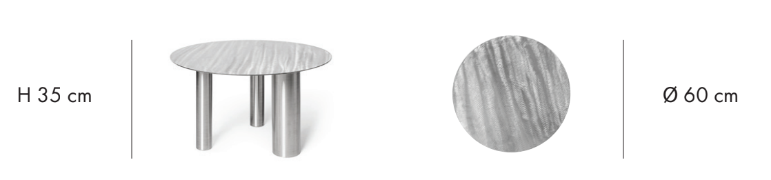 Der Couchtisch Brandt CS1 ist ein elegantes Möbelstück, inspiriert von der Bauhaus-Bewegung, das moderne Eleganz mit Funktionalität vereint. Der Tisch Brandt CS1 besteht vollständig aus rostfreiem Stahl und zeichnet sich durch eine glatte Tischplatte sowie drei zylindrische Beine mit unterschiedlichen Durchmessern aus, die eine ausgewogene Asymmetrie schaffen. Die handgebürstete Oberfläche der Tischplatte erinnert an Wellen auf dem Wasser, was jedes Exemplar zu einem einzigartigen Kunstwerk macht.