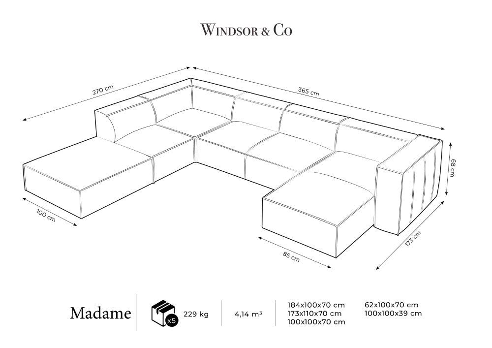 Narożnik skórzany panoramiczny prawostronny MADAME beżowy Windsor & Co    Eye on Design