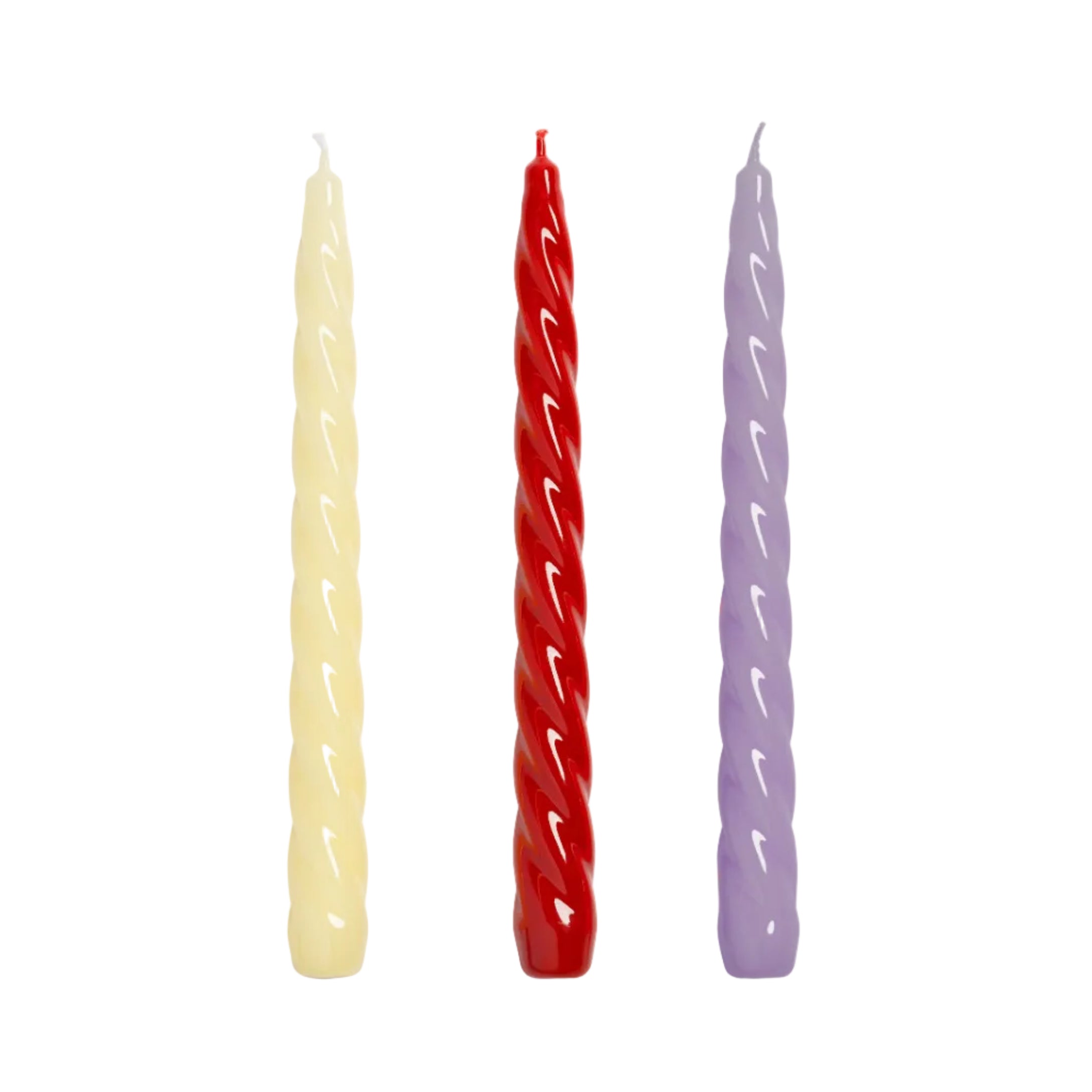 Set von Kerzen BRAVO SUNSET lila mit rot und gelb