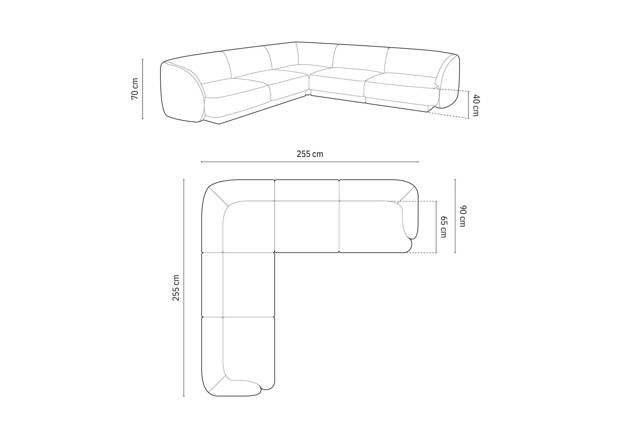 Symmetrische Eckcouch MILEY in seidenweichem, granatblauem Chenille