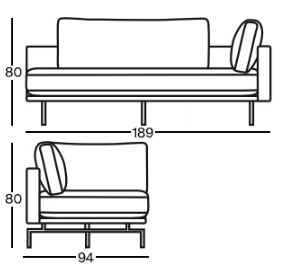 Szezlong links BRIXTON gepolstert mit schwarzem Gestell