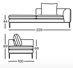 Die schlanken, metallischen Beine verleihen dem Szezlong eine subtile Erhöhung und schaffen einen Effekt von Leichtigkeit und Eleganz, der im Kontrast zur Solidität der Konstruktion steht. Die sanft abgerundeten Armlehnen fügen sich harmonisch in die geräumige Sitzfläche ein und bieten einen bequemen Ort zum Entspannen. Die dezente Farbgebung und die große Auswahl an Stoffen ermöglichen eine einfache Anpassung des Szezlongs Nash an den individuellen Einrichtungsstil und machen ihn zu einem funktionalen und ästhetischen Element moderner Räume.