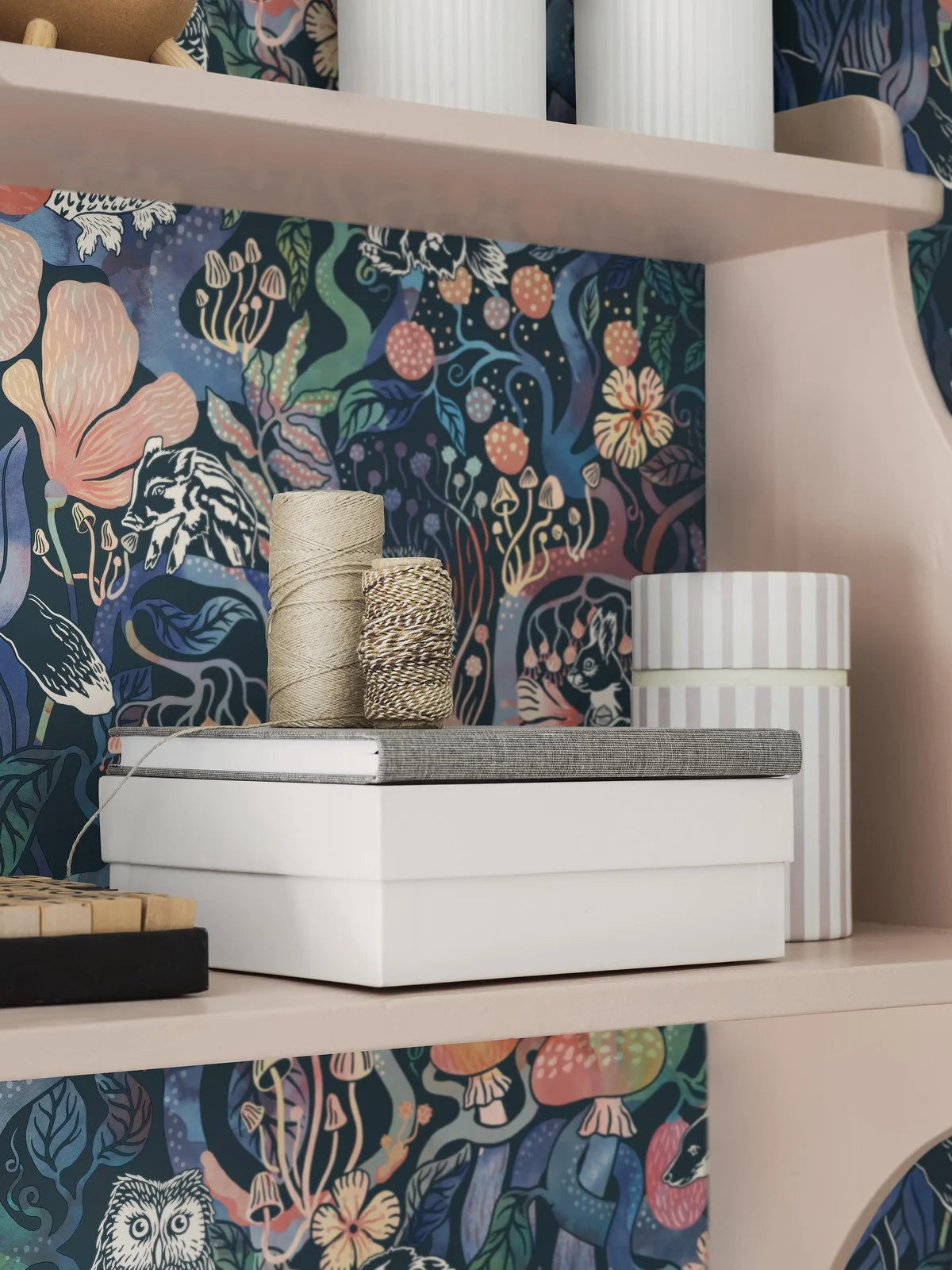 Tapete Magic Woods entführt Sie in die geheimnisvolle Welt eines verzauberten Waldes, in dem die Natur mit der kindlichen Fantasie verschmilzt. Die dichte Komposition aus sich windenden Ästen, Pilzen und versteckten Waldbewohnern schafft ein außergewöhnlich reichhaltiges und fesselndes Muster, das dazu einlädt, weitere Details zu entdecken. Die Tapete schafft eine Atmosphäre von Magie und Abenteuer und verleiht Ihrem Raum gleichzeitig einen modernen und künstlerischen Charakter.