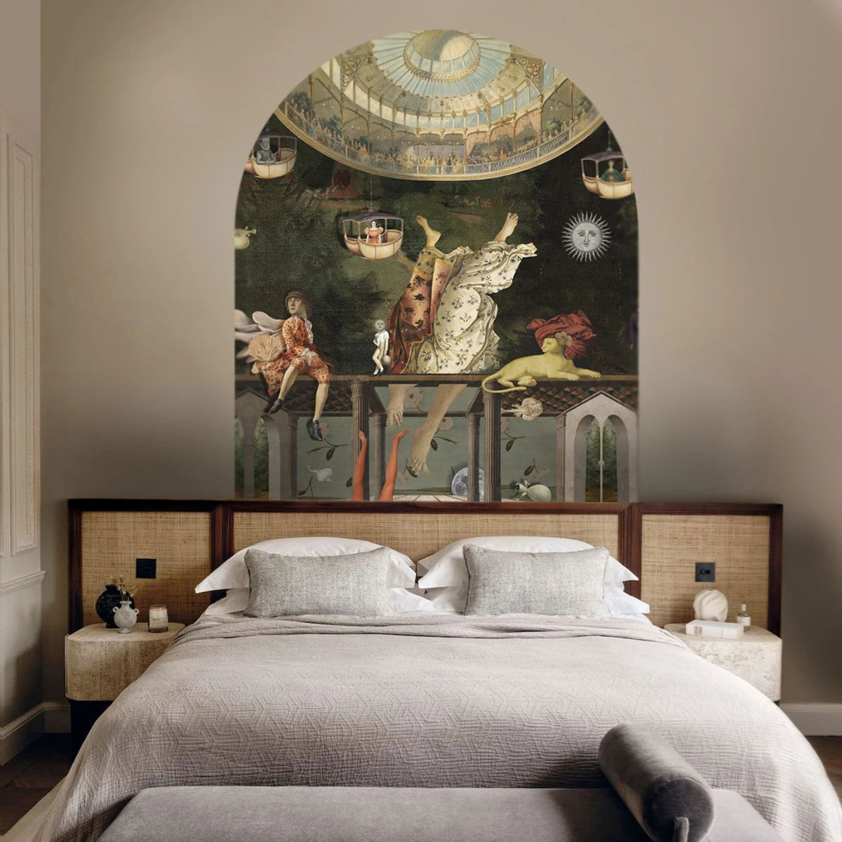 Bogenförmiges Vlies-Tapete CAROUSEL in Grün mit Gold