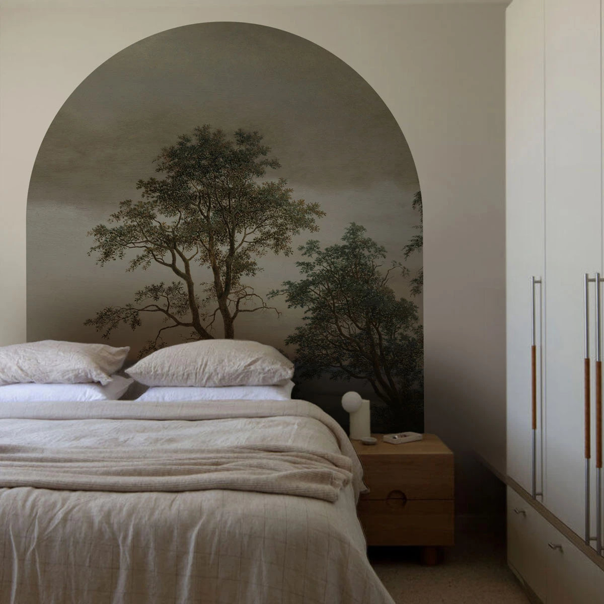 Die Bogen-Tapete Evening Grove eignet sich hervorragend für das Schlafzimmer, über dem Bett, im Flur oder in einem Raum, der der Entspannung und Meditation gewidmet ist. Ihre ruhige Aura und elegante Ausführung helfen, eine Atmosphäre der Stille und Besinnung zu schaffen, ideal für die Erholung nach einem intensiven Tag. Es ist eine Dekoration, die nicht nur schmückt, sondern auch die Stimmung aufbaut – perfekt für diejenigen, die mehr Harmonie und malerische Tiefe in ihr Zuhause bringen möchten.